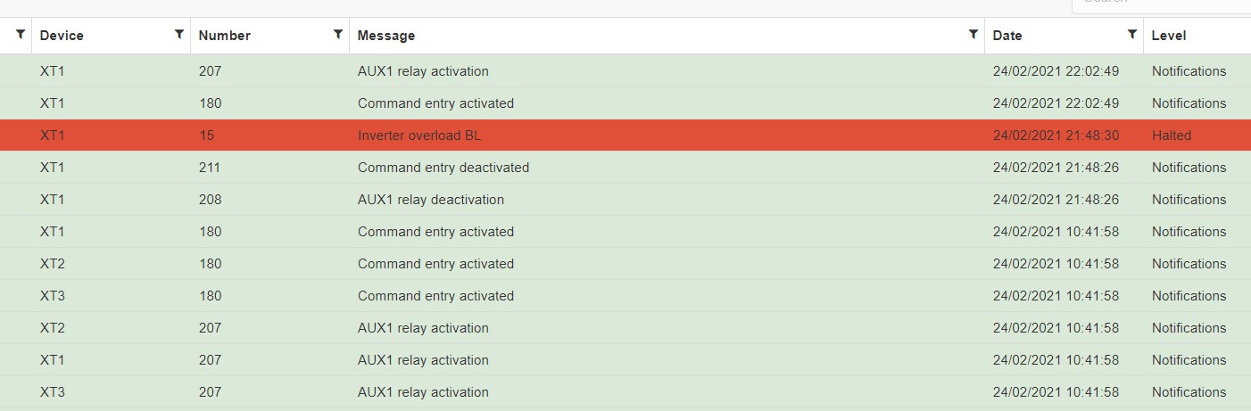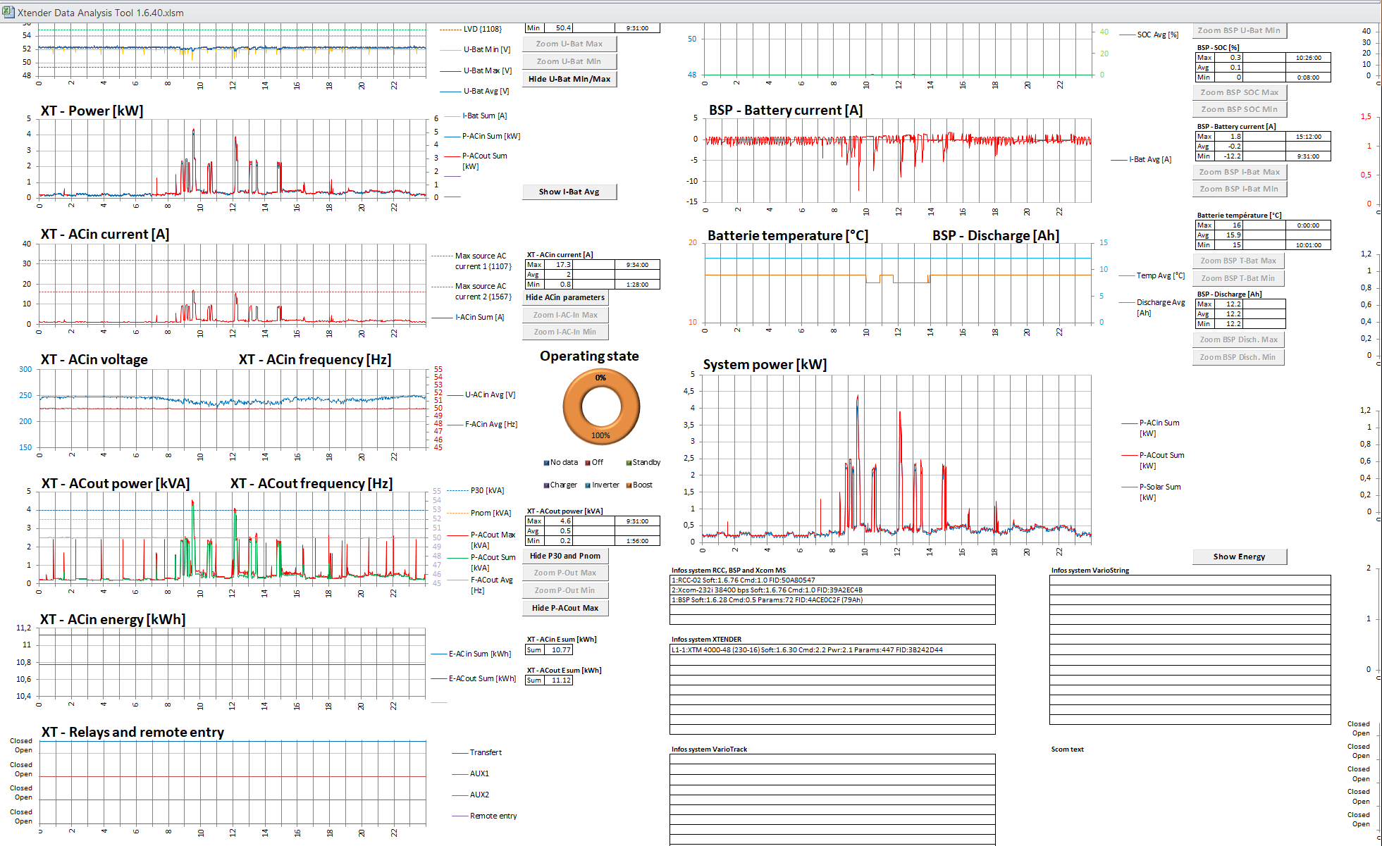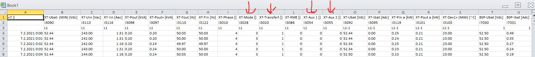 Ak je pripojene RCC alebo XCom a povolone logovanie na SD kartu, tak na karte v adresari CSVFILES\LOG su csv subory (stlpce oddelene ciarkou - treba do excelu importovat z textoveho suboru) tak v tych logoch su udaje pominute, vratane parametrov ako Mode, Transfer rele, Aux1, Aux2