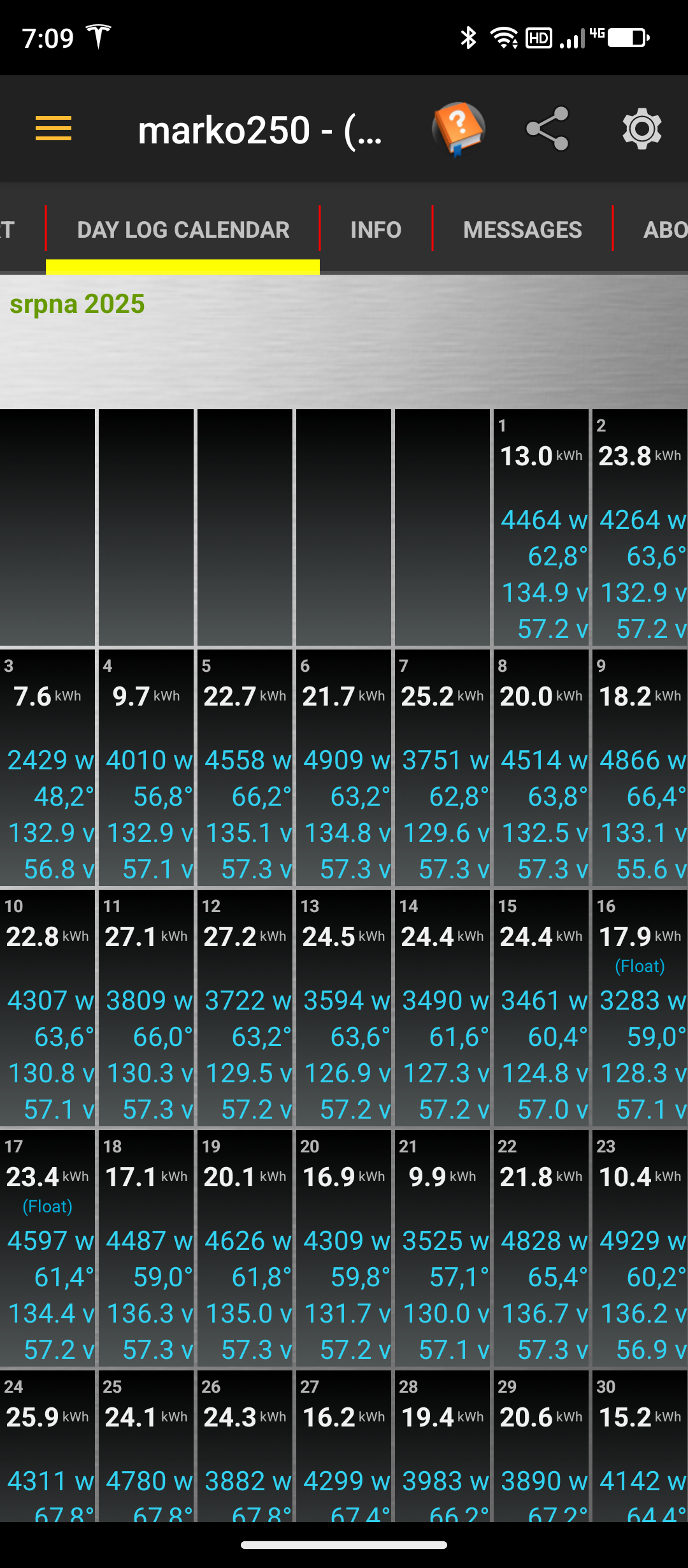 Jinak dneska to pere od rána a fasády jedou jak divé už jsem spotřeboval 100kWh.Baterka plná a rvu to dál do auta a vody.