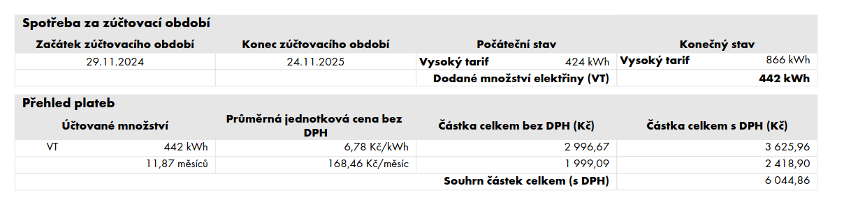 Teď jsem dělal odečet za období 1.11.2024 až do dnes,což je nejtemnější období a za měničem je 1.95MWh.