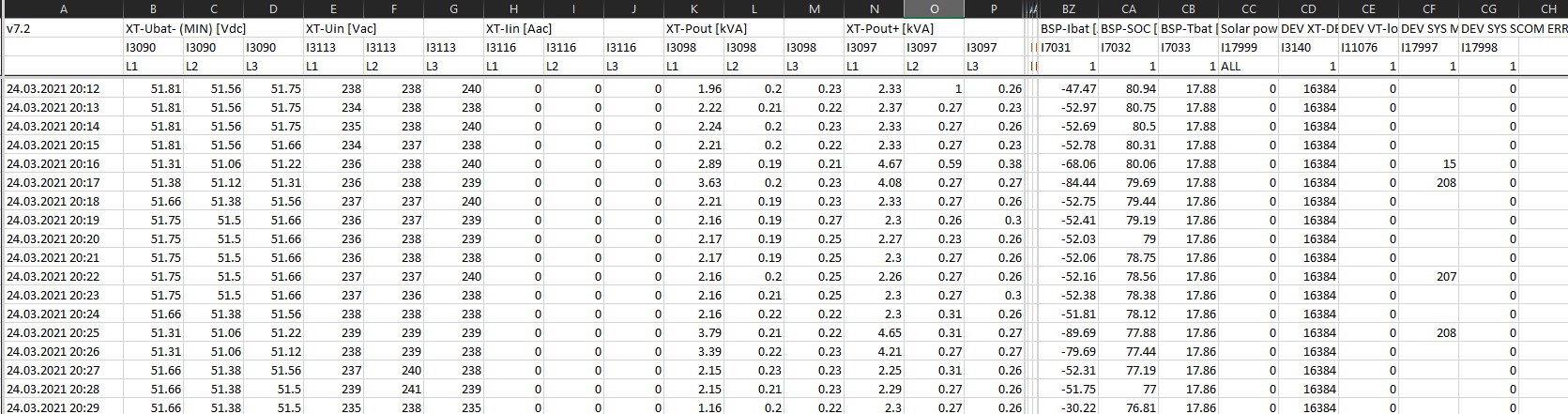 Já stále ještě jedu systémem, plug&play. Tj. zapojil jsen HW Studer a nahrál poslední verzi SW a nic nekofiguroval. Ty vaše čísla tady jsou zatím pro mně španělská vesnice. Pokud hlídám celkový výkon mého 3F ostrovu na 10,5 kW, tak to běhá lépe jak energie z ČEZu. Studer krásných 229-230V a ČEZ stále 244-250V.