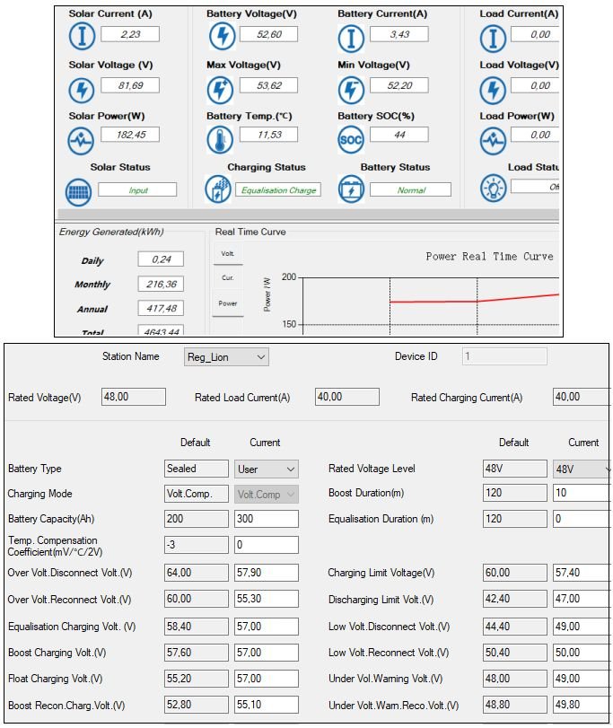 edit: az teraz som si vsimol, ze gel mas 12V a lion 51V, co mas aj nastavene na regulatore, takze iba nechaj nastavene to trvanie eq na 0min a napatie eq zniz na uroven float.