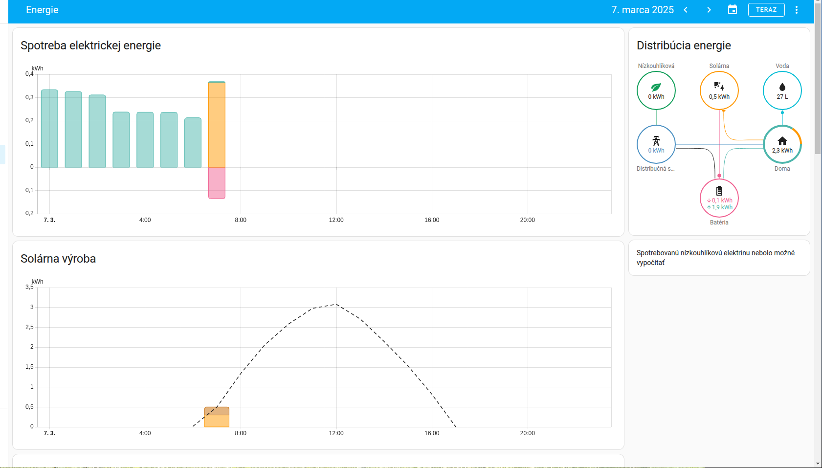to by mohlo byt, tiez tam ma zo shelly pridane vratenie do siete aj ked nic nevraciam.PetrDubi píše: pát bře 07, 2025 8:23 amAby se to zobrazovalo, tak musí být v nastavení panelu Energie (nastavuje se tam spotřeba, výroba a podobný věci) u položky Vracení do sítě přidaný nějaký elektroměr a potom se začnou ty informace zobrazovat. Je to tam už fakt dlouho, určitě přes rok. Já tam mám senzor vracení do sítě ze Shelly, které měří spotřebu TČ, ale stačí jakýkoliv senzor, který udává spotřebu v kWh a nemění se - takže klidně nějaký fejkový![]()