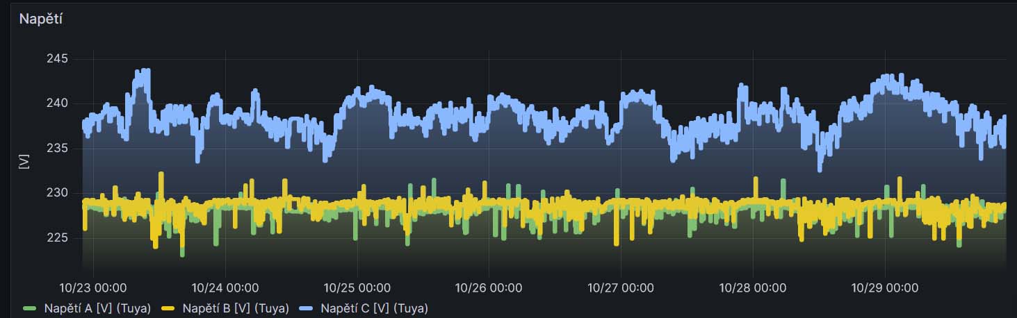 napětí sleduji, ale to je asi tak všecho. Ze záznamu je vidět, co je distributor a co je vlastní elektrárna. Pro spotřebiče to je jedno.