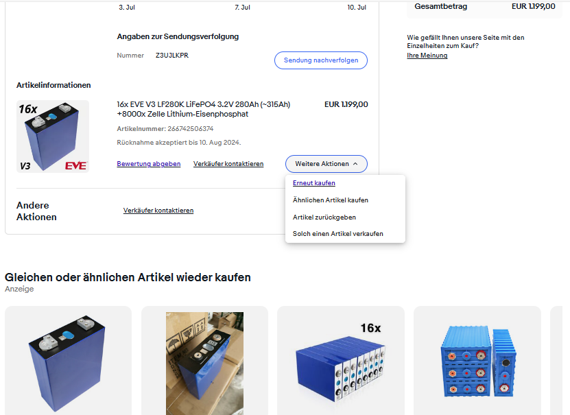 Re: LiFePO4 EVE 280Ah, 304Ah 3,2V Grade A+
