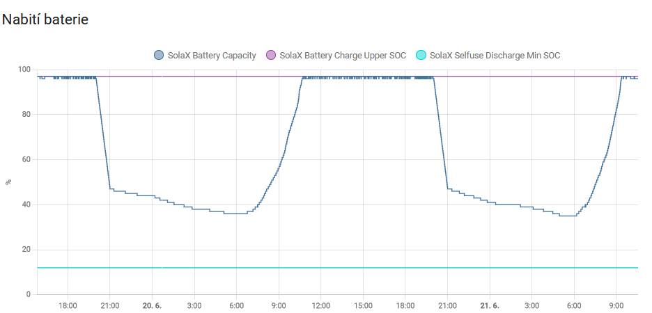 Jinak s tím napětím docela souvisí i max. výkon do/z baterek. Například ty 3f hybridní Solaxy mají max. nabíjecí/vybíjecí proud 30A.