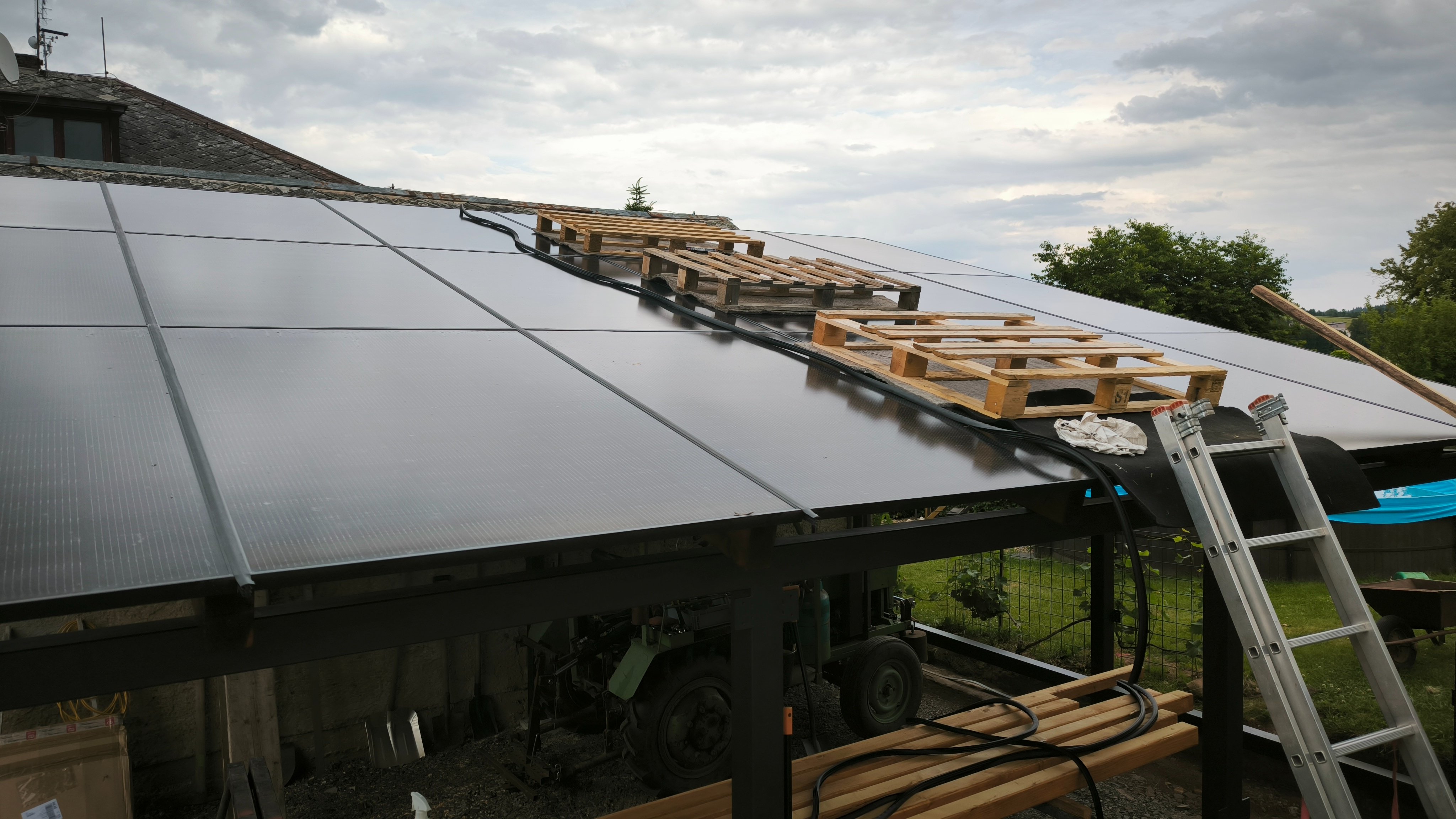 Nalepil jsem na hliníkový díl žebříku pěnovou lepící pasku a ten práskl přes panely a po něm normálně chodil.leoshavla píše: sob črc 05, 2025 4:11 pmTak už jenom podélné gumové těsnění a bude to. Máte nějaké rady, jak se leze po panelechNarovnám tam asi palety a po nich by to mohlo jít.
