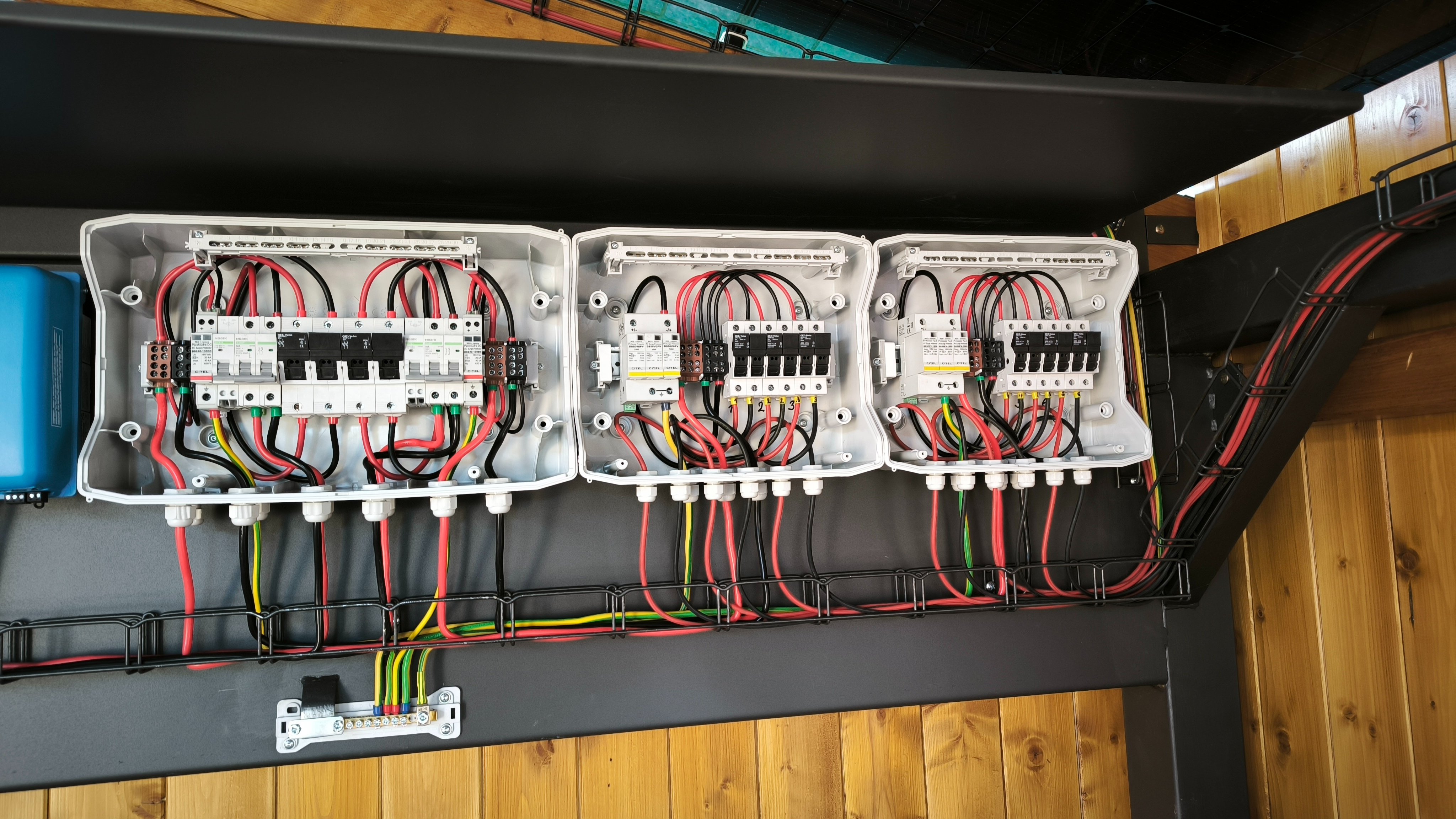 Jsou to rozvaděče od Noark IP65, přívody k přepětovkám ještě upravím