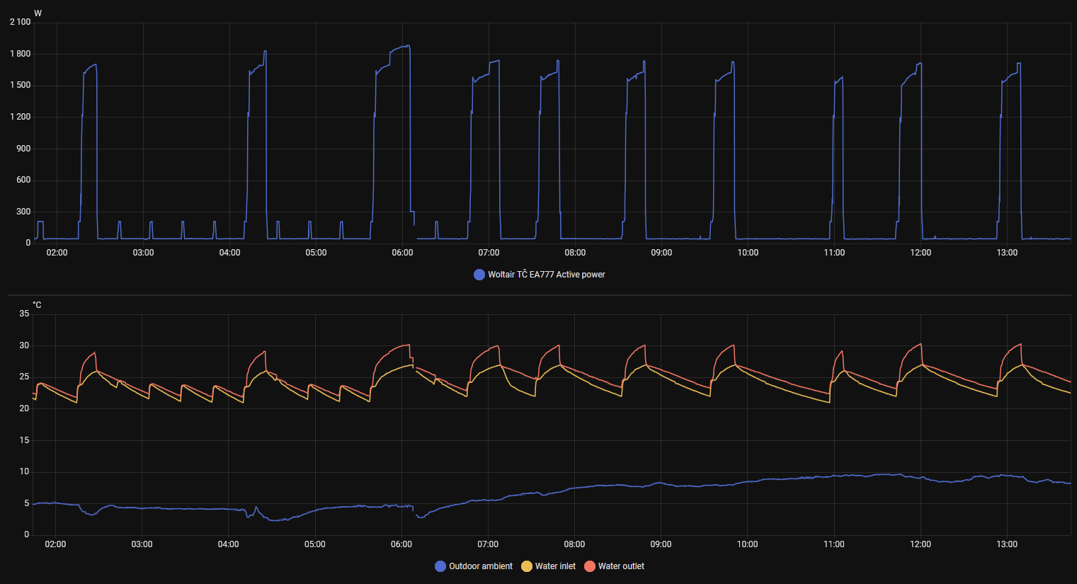 To teda žere docela dost na to, že je to eko-bio zařízení.TomHC píše: pon říj 27, 2025 1:50 pm9 kW verzia v Eco režime bez ohrevu 11W, s predohrevom kompresora (crankshaft heating belt) 45W, predohrev + obehovka 210W. Pod 5°C zapína každých 20 minút obehovku na 2 minúty - asi aj v Off režime.