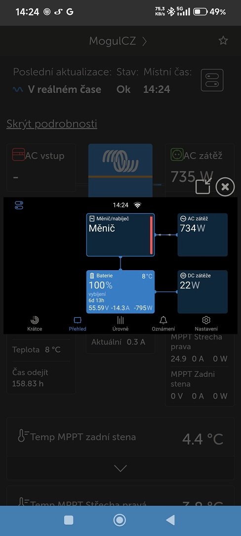 Multiplus II 5000 testoval Franta2776 při nabíjení EV a psal o tom v jiném tématu. Akorát on při tom tehdy neměřil účinnost, ale jen omezování výkonu ve spojitosti s chytrým Wallboxem také od Victronu. Multiplus II 5000 mu po nějaké době provozu viz citace níže po komunikaci vůči Wallboxu omezoval nabíjení na 3400W zřejmě proto, že interní větrák v Multiplus II 5000 to nestačil chladit.Mogul píše: ned pro 28, 2025 8:02 pmŠkoda, že nemám na stejný test i 5kVa. Možná bychom se divili i u něj![]()