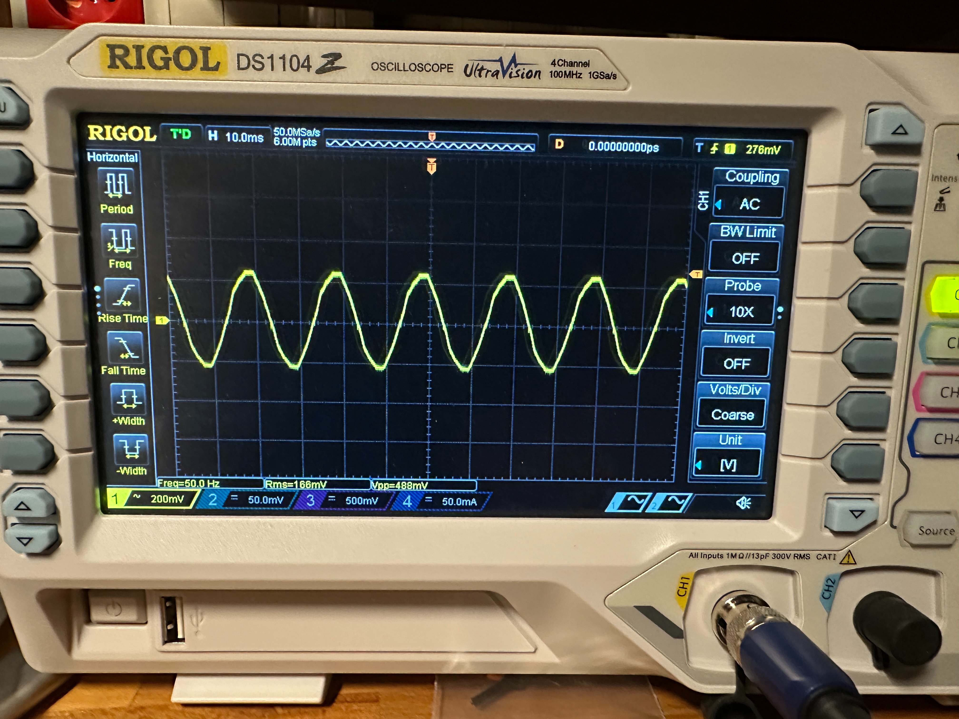 Ano, samozrejme meranie striedaveho prudu ACI a rozsah mA, aj to na tom rigole tak svieti. Kable v zdierkach na meranie mA a zapojene som to mal do serie na zapornej vetve ktora ide z CT na ciernom kabliku na vstupe do menica. Ten rigol je urcite o niekolko radov presnejsi v merani ako ten cinsky menic. Pri hentom konkretnom merani prudu ma presnost 0.15%+1200dig. Zajtra s nim skusim zmerat aj napatie, to sa pripaja paralelne na CT vstup menica, uvidim ako ho ovplyvni v porovnani z osciloskopom. Ci to nebude mat suvis nejako s tou zemou lebo oba pristroje su pri merani zapojene do uzemnenej el. zasuvky. Pripojim tam aj obycajny multimeter co je na baterky a uvidim.