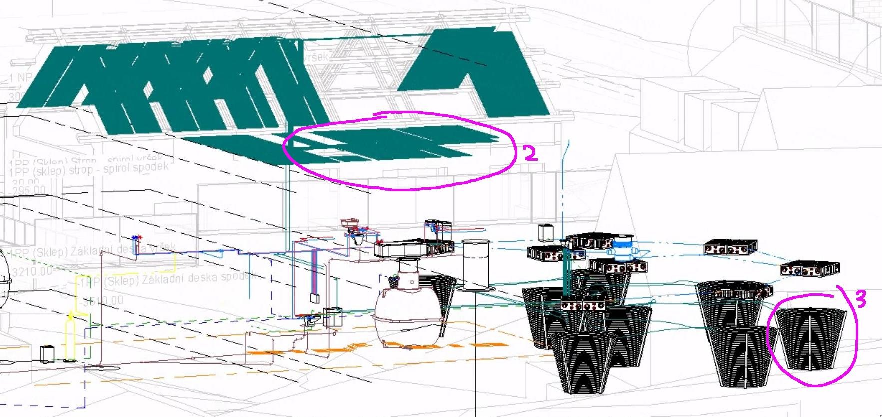 Plánek tedy ukazoval: Realita stropní kapilární rohože (2): Realita geokoše (3): To pak 8x - včetně vlastní výroby, protože mi od betatherm.de přišly moc drahý.