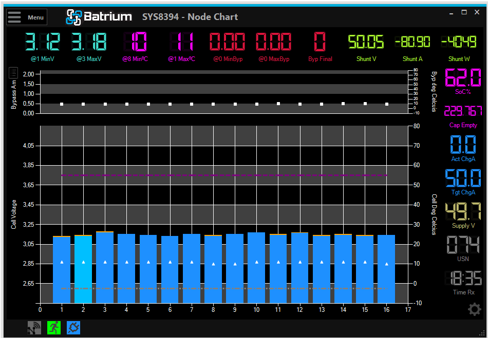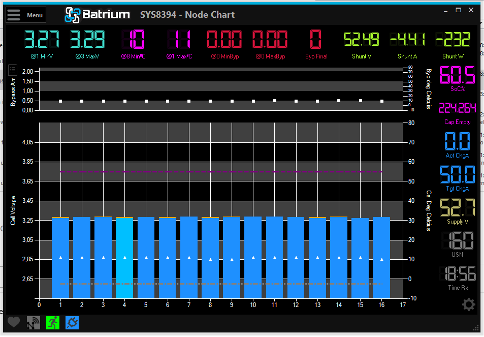 K tomu mam BMSku Batrium ktera ma balancery s proudem kolem 2A (nedaji to trvale) balancovaci napeti je nastaveno aktualne na 3.5V