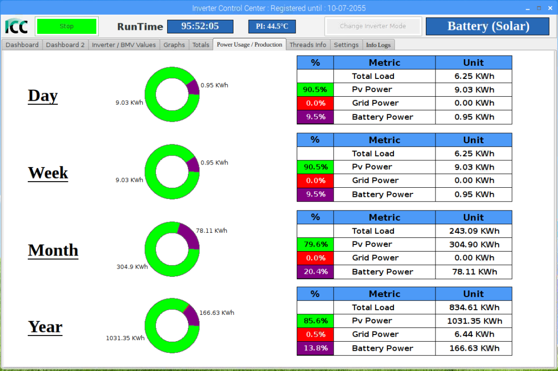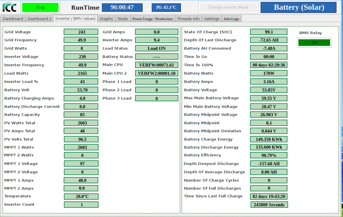 5,5kWp - 4x Solartec mono 180Wp +¨6x IBC 155Wp poly + 10x Solea 170Wp mono + 6x Husinage HSG 190Wp + 6x Calyxo 70Wp amorf vertikálně (JV), 2x ZN ShineSolar poly 250Wp + 2x 260Wp poly (JZ), Epever LS 3024B, Epever LS 2024B, MakeSkyBlue 20A, eSmart 3 - 60A, 19 kWh Li-Ion, Axpert MSXE PF1, 24V/3,0kW, Axpert MSXE 24V/2,4kW.