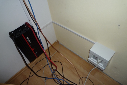 Bohužel to neustál watt metr na modely, který jsem měl zapojený na výstupu z baterií, tedy měřil na 12V aktuální spotřebu. KDyž jsem ale vrtal díry pro rozvaděč a ještě odsával prach, tak se nějak odpájel kablík z měřáku, viz foto. Možná do toho jela i lednička, touž netuším. Každopádně na měřáku byla špička 1200W což je cca 100A. M2řák je do 130A, ale přívodní dráty bývaly horké, takže pozor kdo používáte taky tuto mašinku: