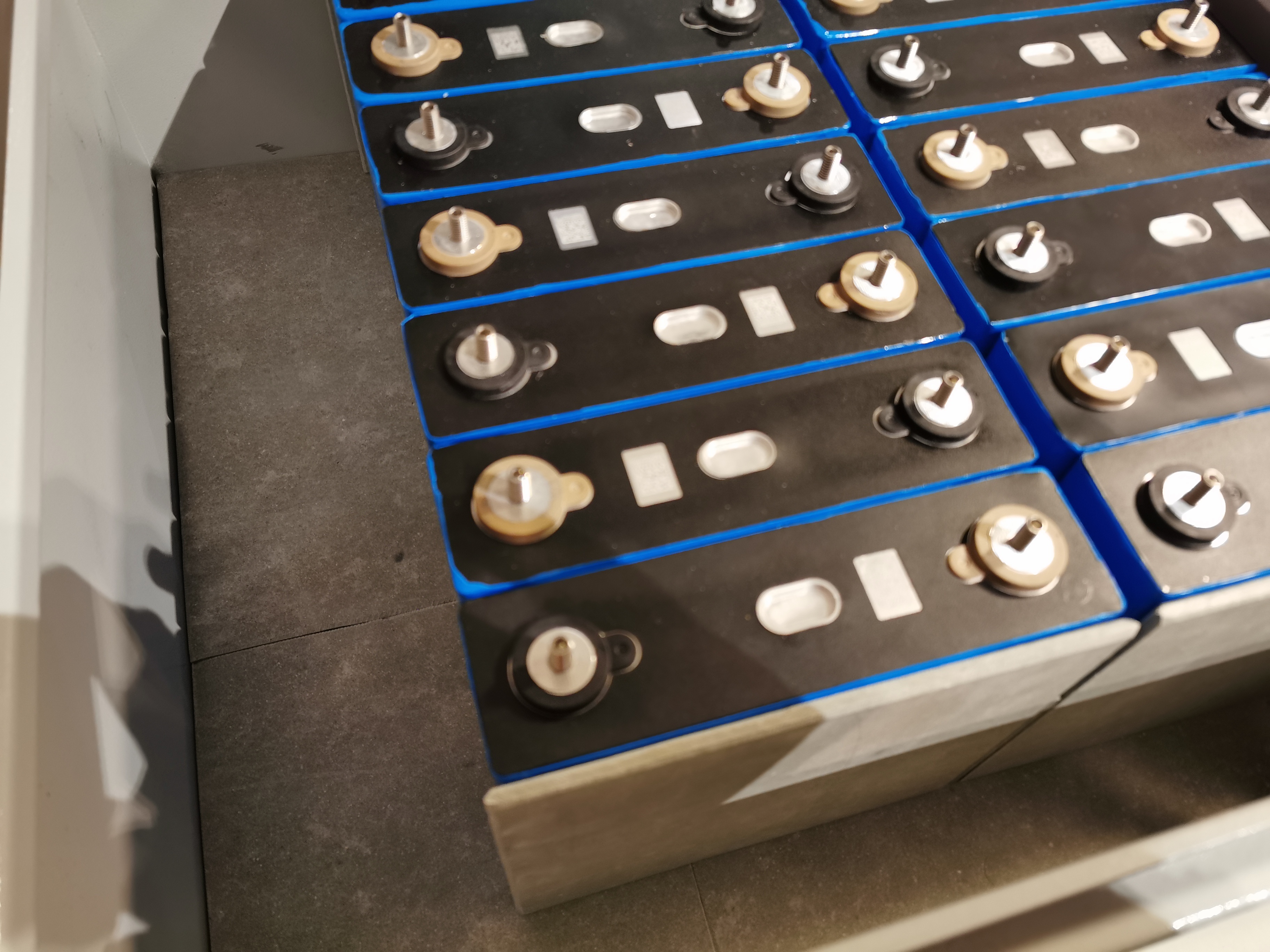 . Takže pro velké pobavení, jsem si to naměřil s prořezy a aby to sedělo do krajů, tak jsem to musel křížem řezat, ale s velkým štěstím se zadařilo a sedlo si to jako puzzle. Zítra zatmelím kamnářským tmelem. Řezáno kotouč na beton a flexa, práce na 30min po rozměření. Když jsem byl v tom řezání, tak jsem udělal konce aku řady a oddělení pravého bloku od levého, aby propojky byly totožné a aby aku s největším potenciálem byly odděleny cemvitem. Myslím že se to podařilo na chvalitebnou minimálně, takže úspěšný den.
