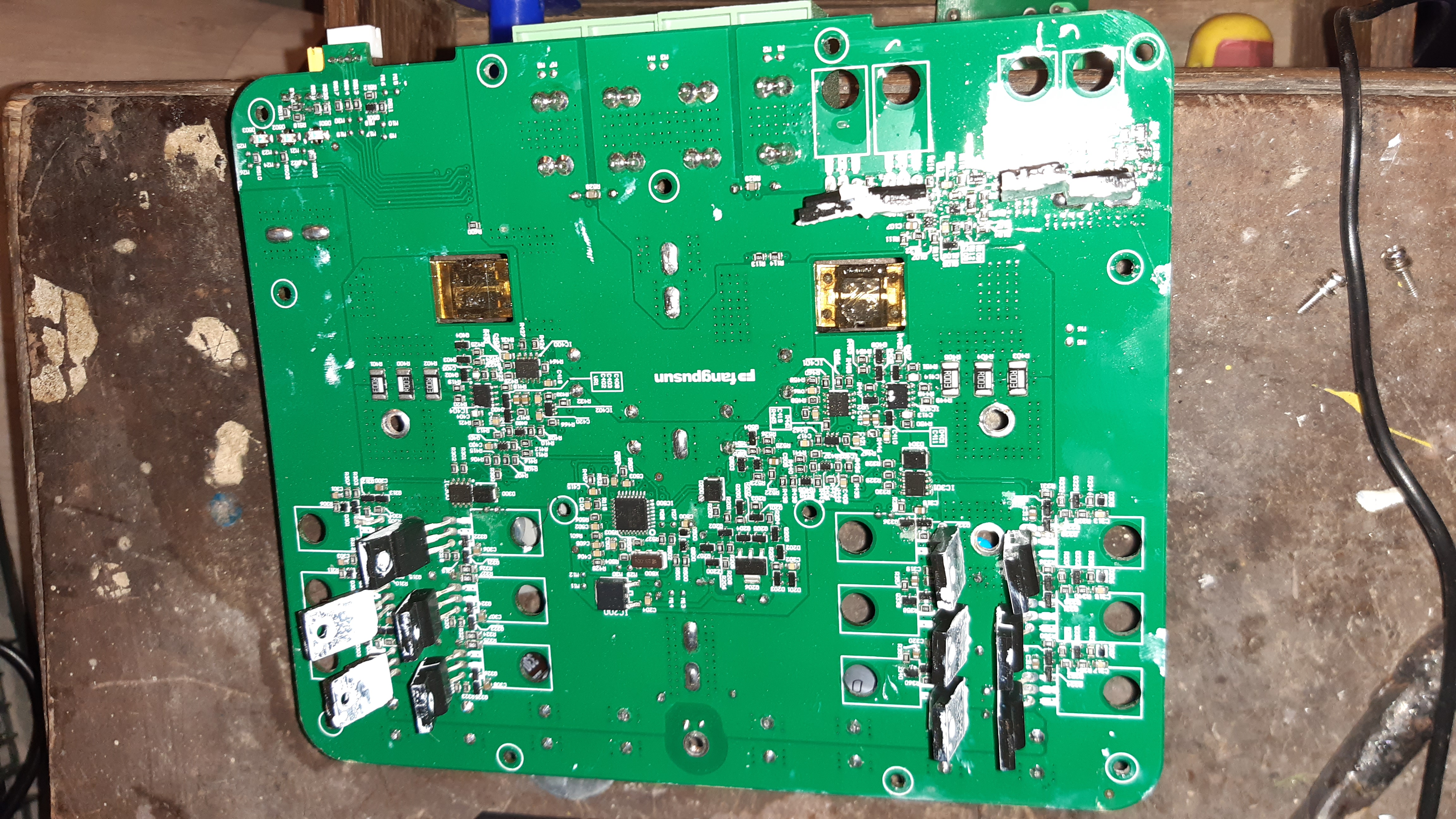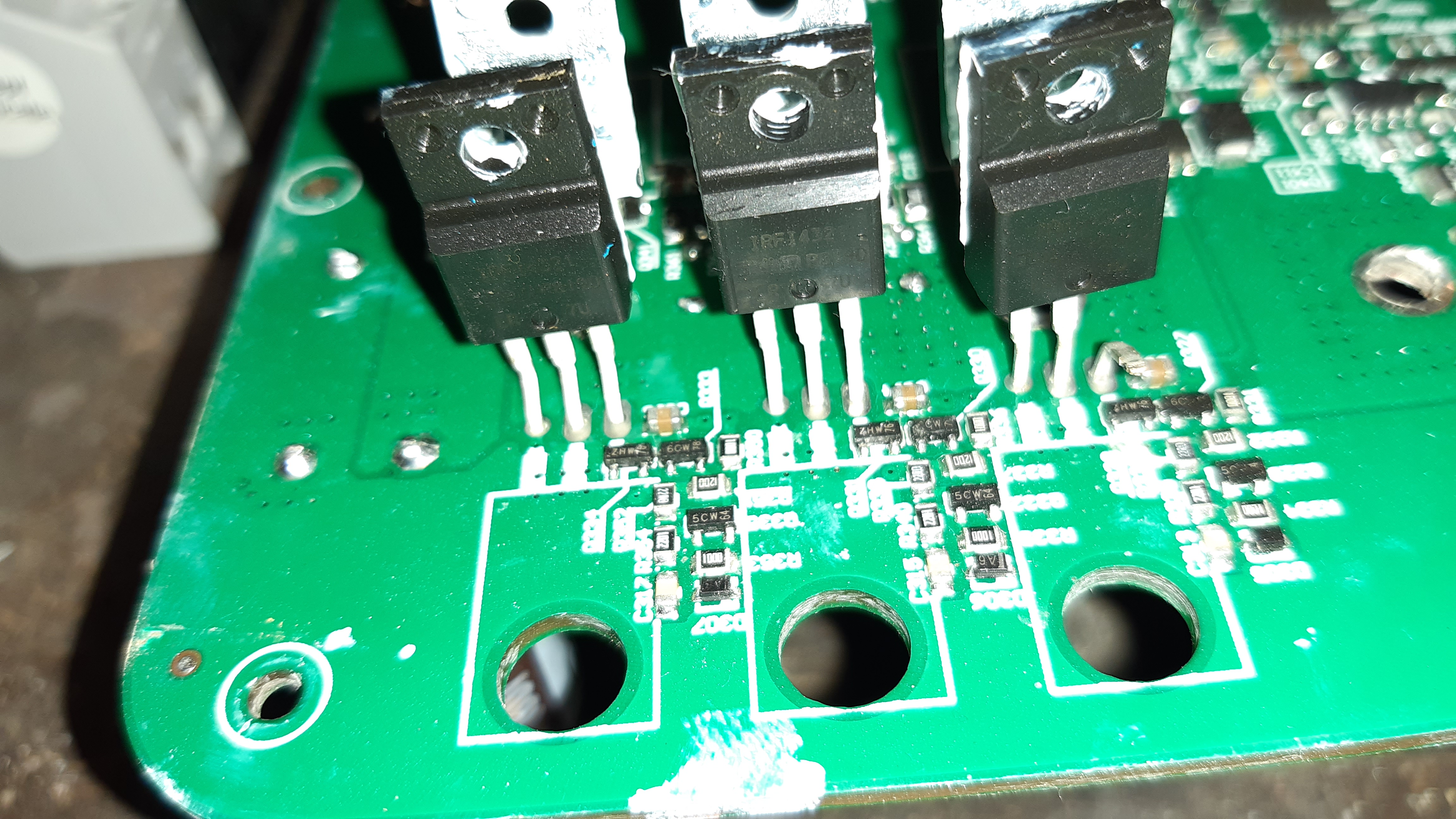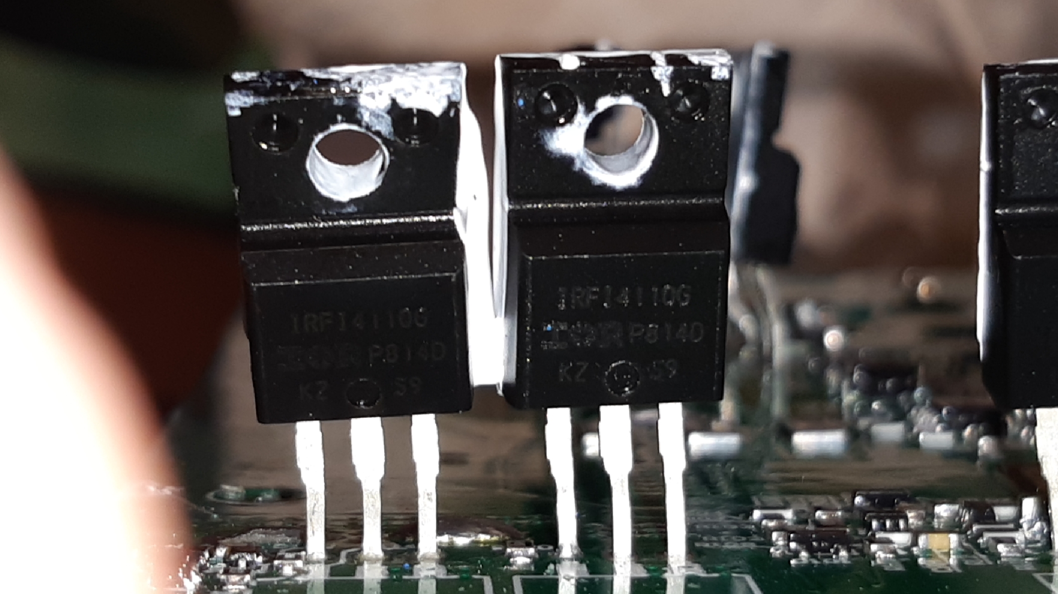 jasně, prostě nezkušený oko... IRF (I) 4321, IRF (I) 4110 to I znamená jenom izolovaný pouzdro, bez I to má měděnou plošku pro přenos tepla na chladič... Celkem odvážný osazení pro 150V Voc , když 4321 je 150V a 4110 je 100V mosfet , stejně jako 160V elektrolyty...