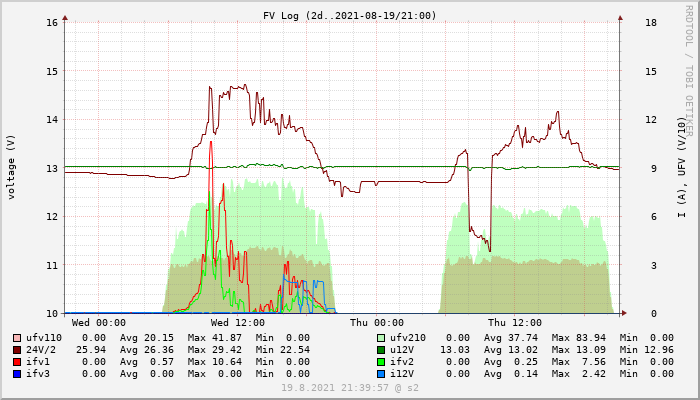 Abych pravdu řekl, kdyby mě na to lidi neupozornili (celkem 4) tak bych na to přišel až později, páč logování z victrona funguje, je přes USB do RPi, napětí na obou baterkách - LIFE i ovovu se měří, Velleman (4ch logger 0-30V -> USB) měřící napětí je taky přes USB, a já se stejně orientuju spíše už podle napětí na baterkách, kdy přesně vím na čem jsem a ostatní je pro mě ne až tak důležité. Jasně, třeba dnes nejsem schopen spočítat výkony, páč U x I = P a já neznám I z panelů za dnešek vůbec.