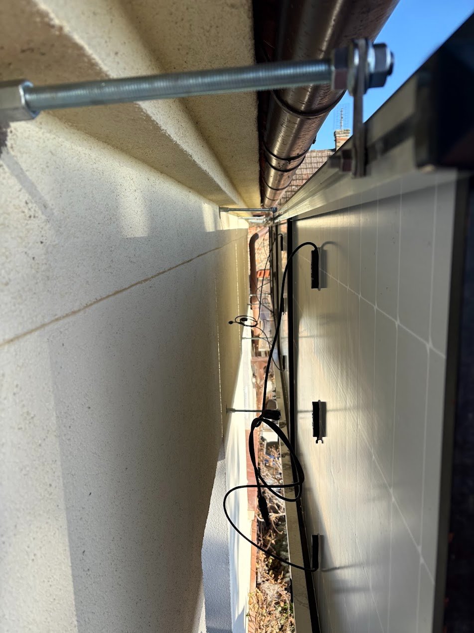 4 panely postupně budou, nad sebou, naplacato by to šlo pod okny, napravo od okna dlouho nejde slunce.....2 panely budou seriově do měniče MUST 48V. Šlo by ukázat upevnění na fotce?