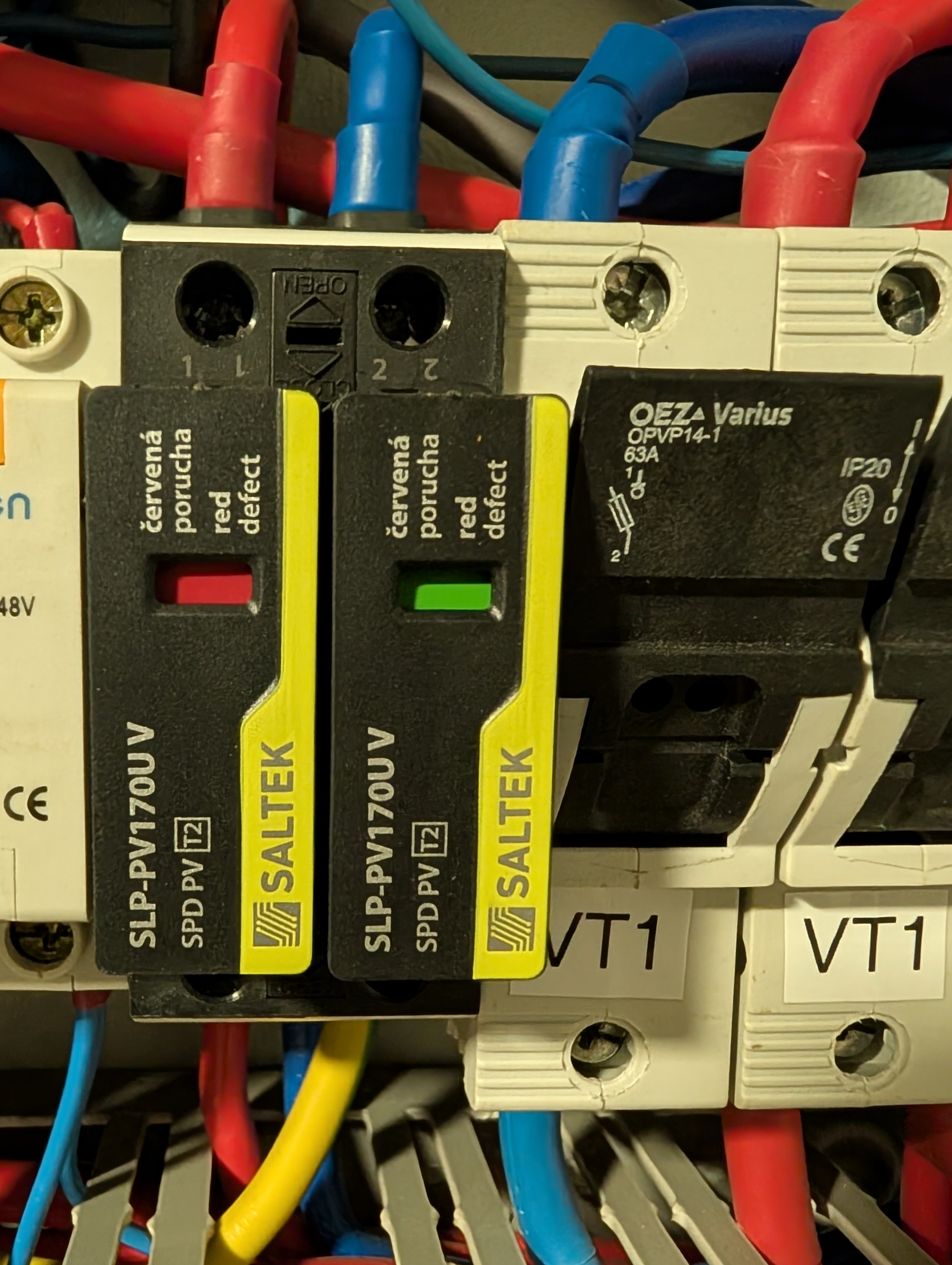 Jak se v minulém týdnu přehnal kolem nás nějaké bouřky, tak jsem v sobotu objevil jeden varistor Saltek V SPD PV 170 v poruše. Přitom vše funguje dál a na chodu VT1 jsem nic nezaznamenal, normálně vyrábí dál.