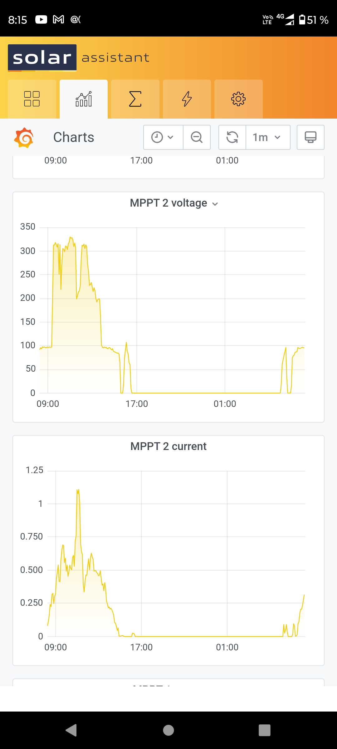 2 roky odpojuji panely přes homeassistant při zjištění zaseknutí.mam Axpert max twin 10 Někdo mi to tu poradil co si pamatuji. při uvaznutí mam kontrolu 90V pokud jsou i ampery tuším 0,5A tak dojde na 10-20s odpojení panelů stykačem a zase připojení tim se to resetne a mppt naběhne jak má... Například dneska to dělalo asi 6x ale prostě to nic moc nedává mam i Victron a jsem docela na dnešek zjedavej na ten rozdíl výroby pole totiž mám stejné tak to bude krásně vidět.