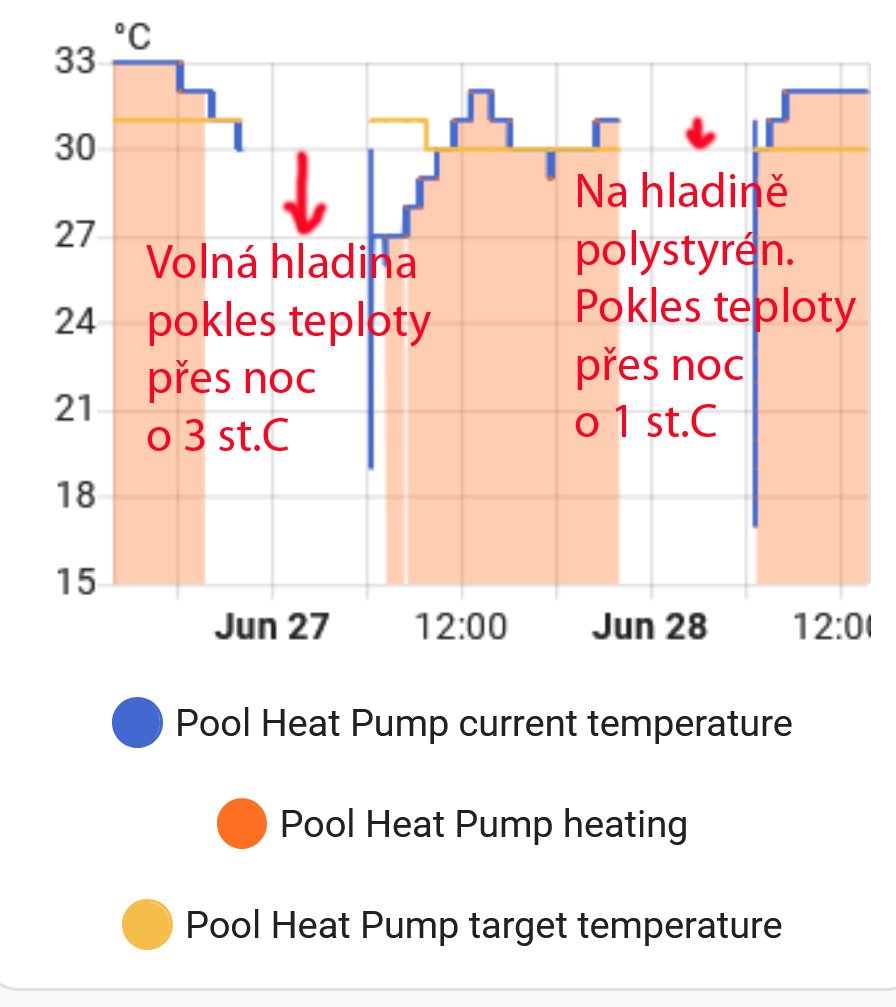 Je otravné bazének na noc přikrývat. Když to neudělám, ochladí se o 3 st.C a ohřev tepelným čerpadlem zpět trvá cca 3 hodiny. Navíc se odpaří asi 3 cm vody.