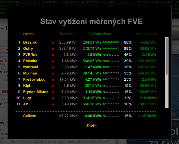 Vsimnete si prosim v mereni vytizenosti FVE zde na mypower.cz jak nas v tomto obdobi obvykle "rulezzuje" alebrz roluje alebrz uplne drti rongicovy mikroFVE Breznik a Ostry. Jsou ve vyssich polohach nekde na sumave a mozna je to nad tema hnusnyma mrakama kteryma ted vsichni trpime
