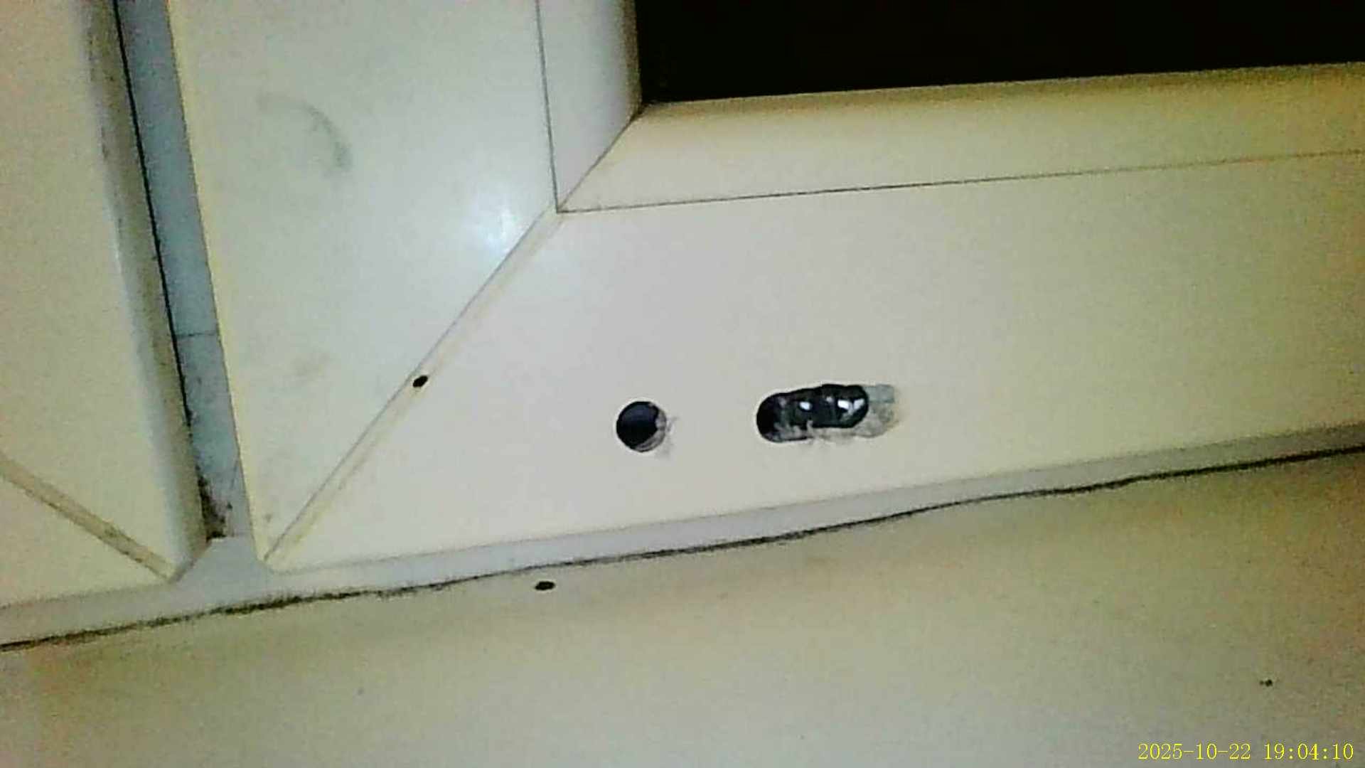 Kdo chce hračku, tak k čemu je taky dobrá endoskopická kamera. U plastového okna se rozbilo otevírání. Aby ne, když slouží jako hlavní vchod pro kočky, kdy se jim musí každý den tak stokrát otvírat. Okno nešlo otevřít. Cca 20 let staré, ale kování už má takové, že se nedá otevřít (vypáčit) plochým šroubovákem. Jednou vyvrtanou dírou jsem se podíval kde je jezdec a pak dalšími otvory udělal místo pro příborový nůž, kterým jsem jezdec vysunul z drážky. Okno i zavírání funguje, jen se nesmí dávat na ventilačku nebo mikroventilaci. Až bude vše v cajku, tak to zatmelím.