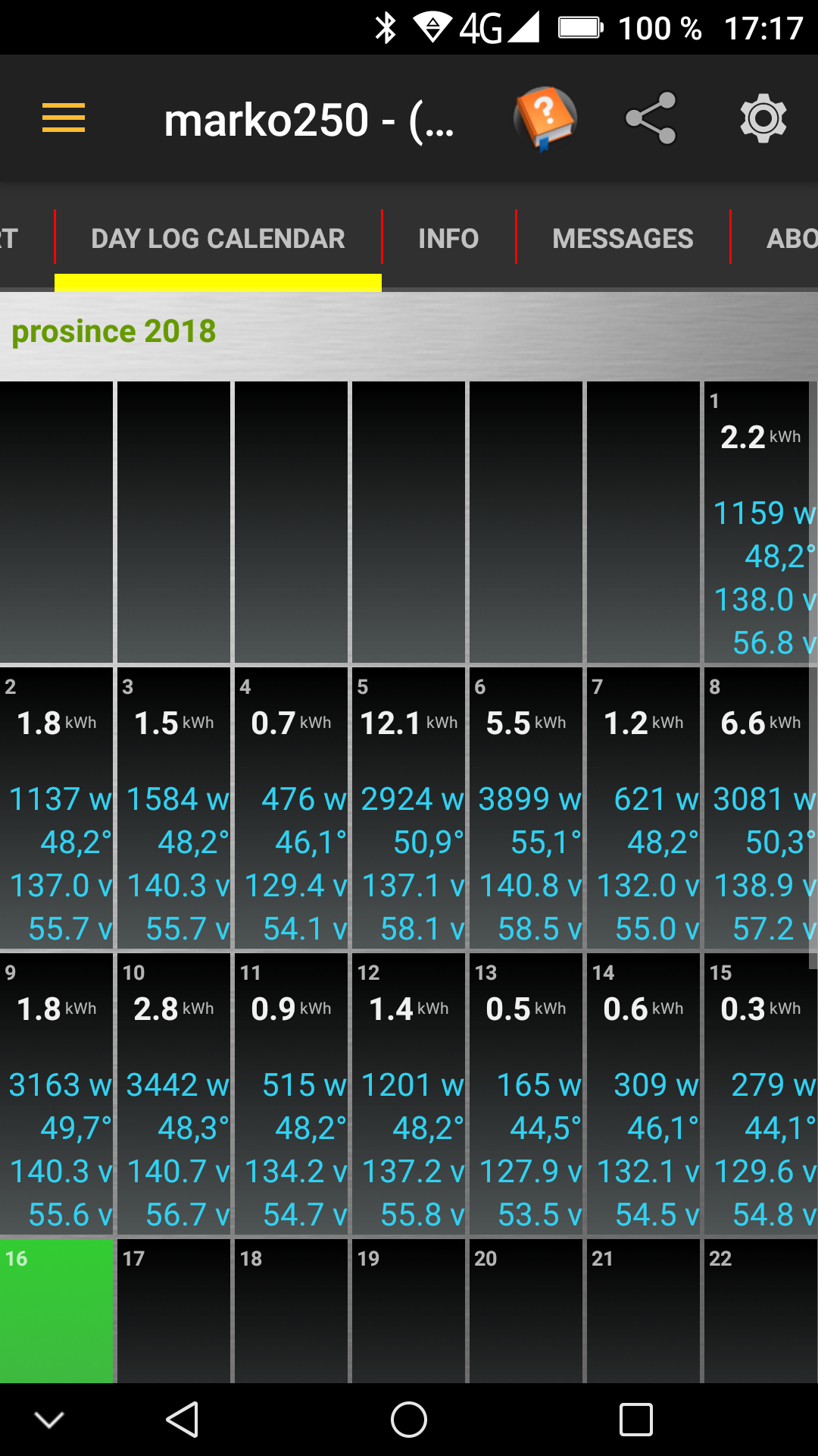 Tak dnes vyrobených 14,4kWh z 4,62kWp. Batérie nabyte na 50%. Aspoň niečo, to budú posledné dni tohto roka slnečné typujem...