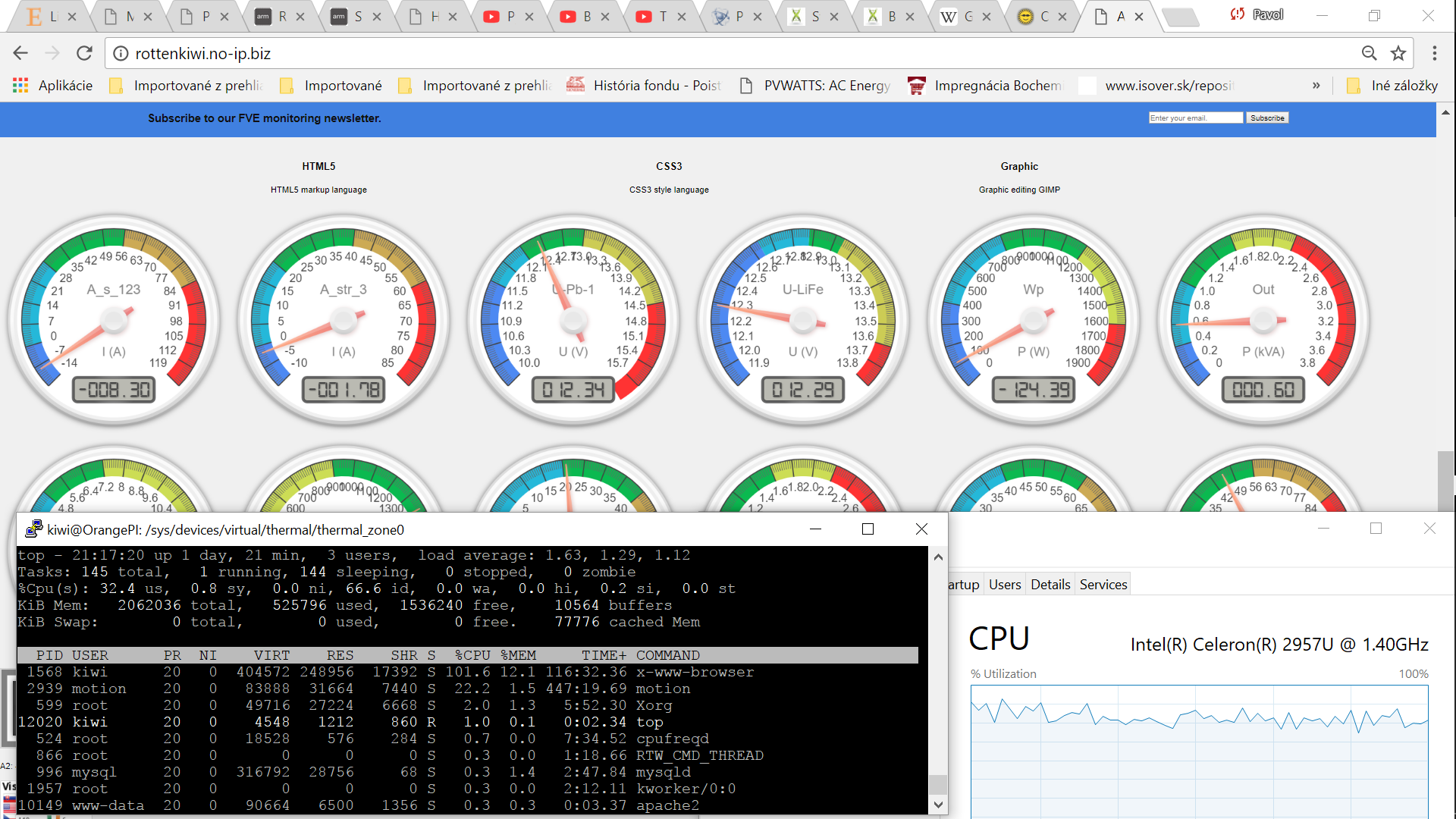 Na hornom obrázku vidíte, že to isté zvláda OrangePi H3 Arm na ľavom monitore s 1.2 GHz