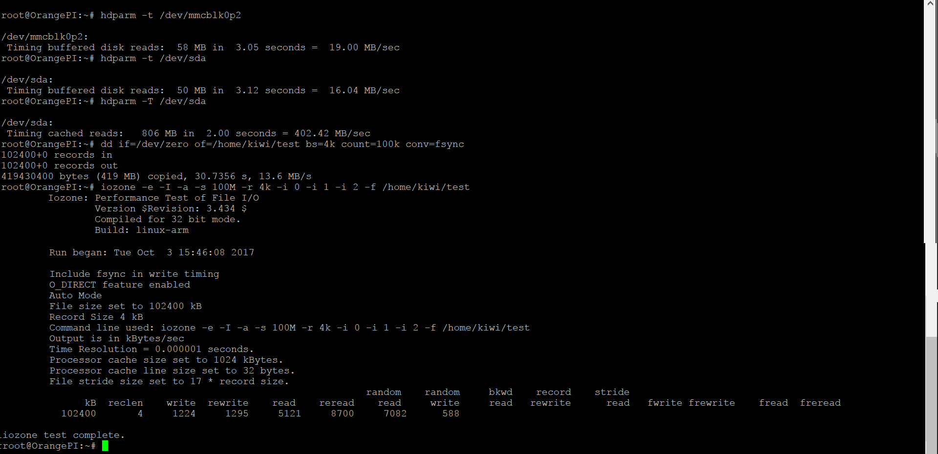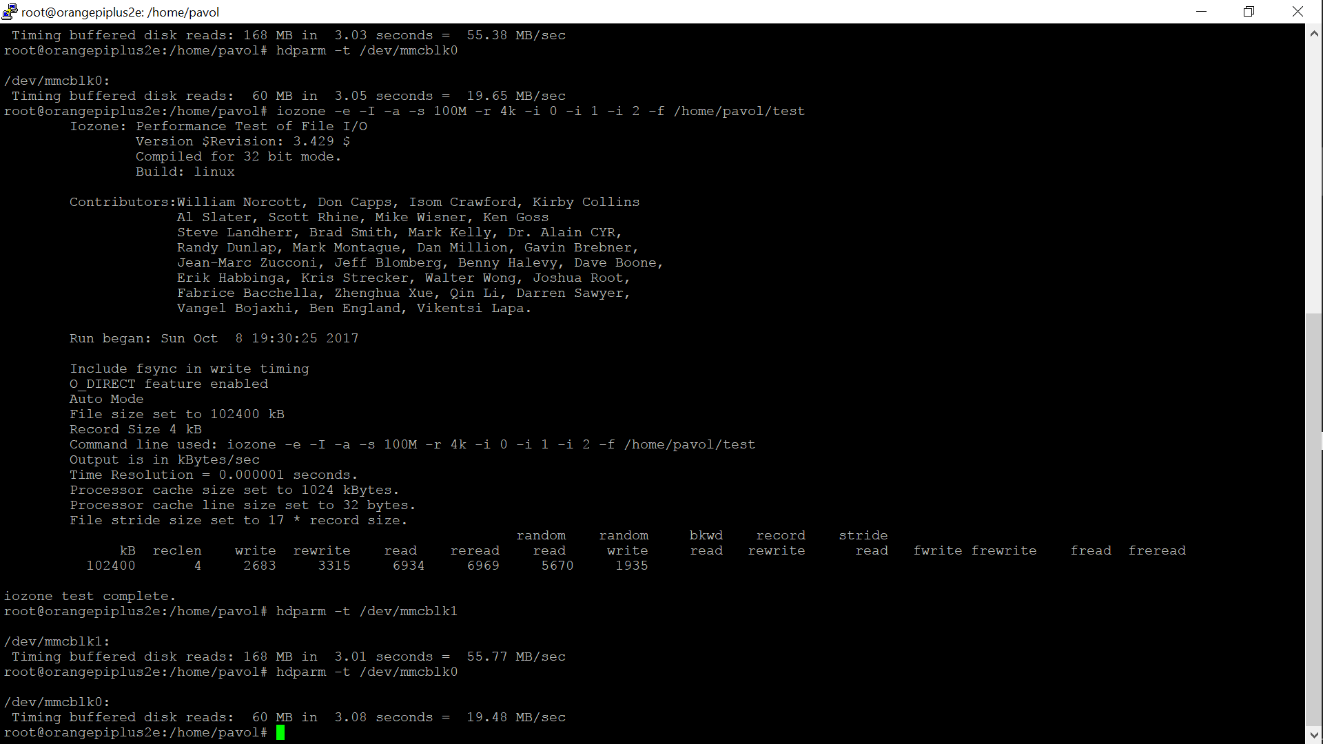 A ešte test interného úložiska na Orange PI - 13 GB. /dev/mmcblk1