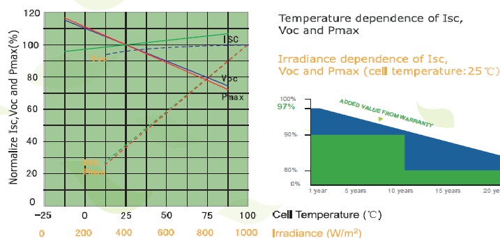 Tohle udává výrobce. Nejlepší výkon je po ochlazení a umytí deštěm. Katalogové hodnoty panelu jsou při 25st.C a při 1000W/m2.gupa píše:Máš nějaká konkrétní měření? To by mne zajímalo. Protože když si vezmu např. 10 panelů a zapojím je paralelně, co mohu od takových horkých panelů čekat?LUI píše:V jednoduchosti :