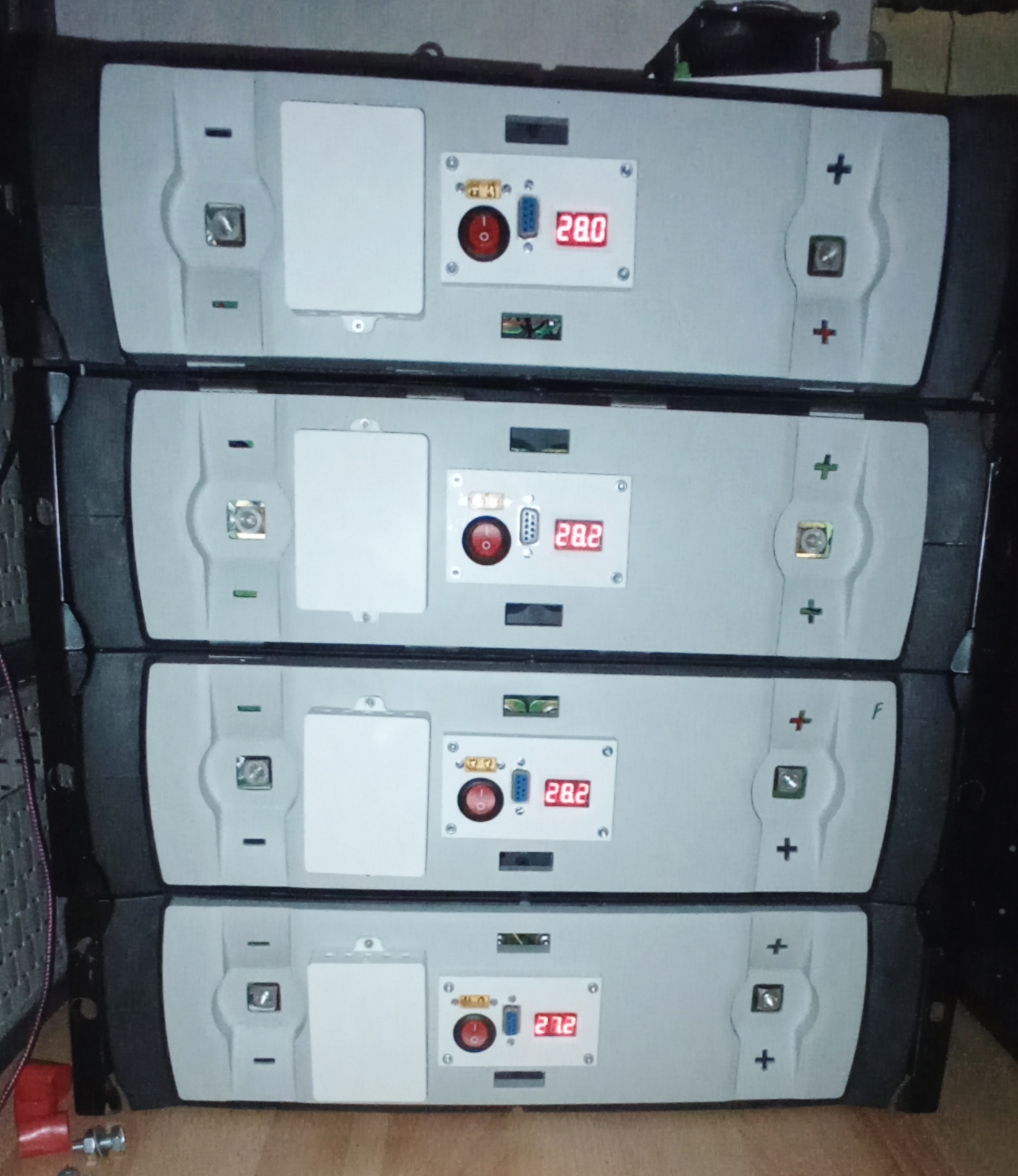 VRLA su odpojene a nahradene Li-Ion SAFT Synerion 24M z NKONu. Samovybijanie akumulatorov je zmerane po 21 dnoch od nabitia. Je len cca 500mAh co je zanedbatelne. Prepoje medzi blokmi su 6mm2(kabel Staubli Silistrom)Pred chvilou som zahajil testovanie v ostrovnom rezime a nastavil Epever na Lithium program s vlastnym doladenim parametrov..