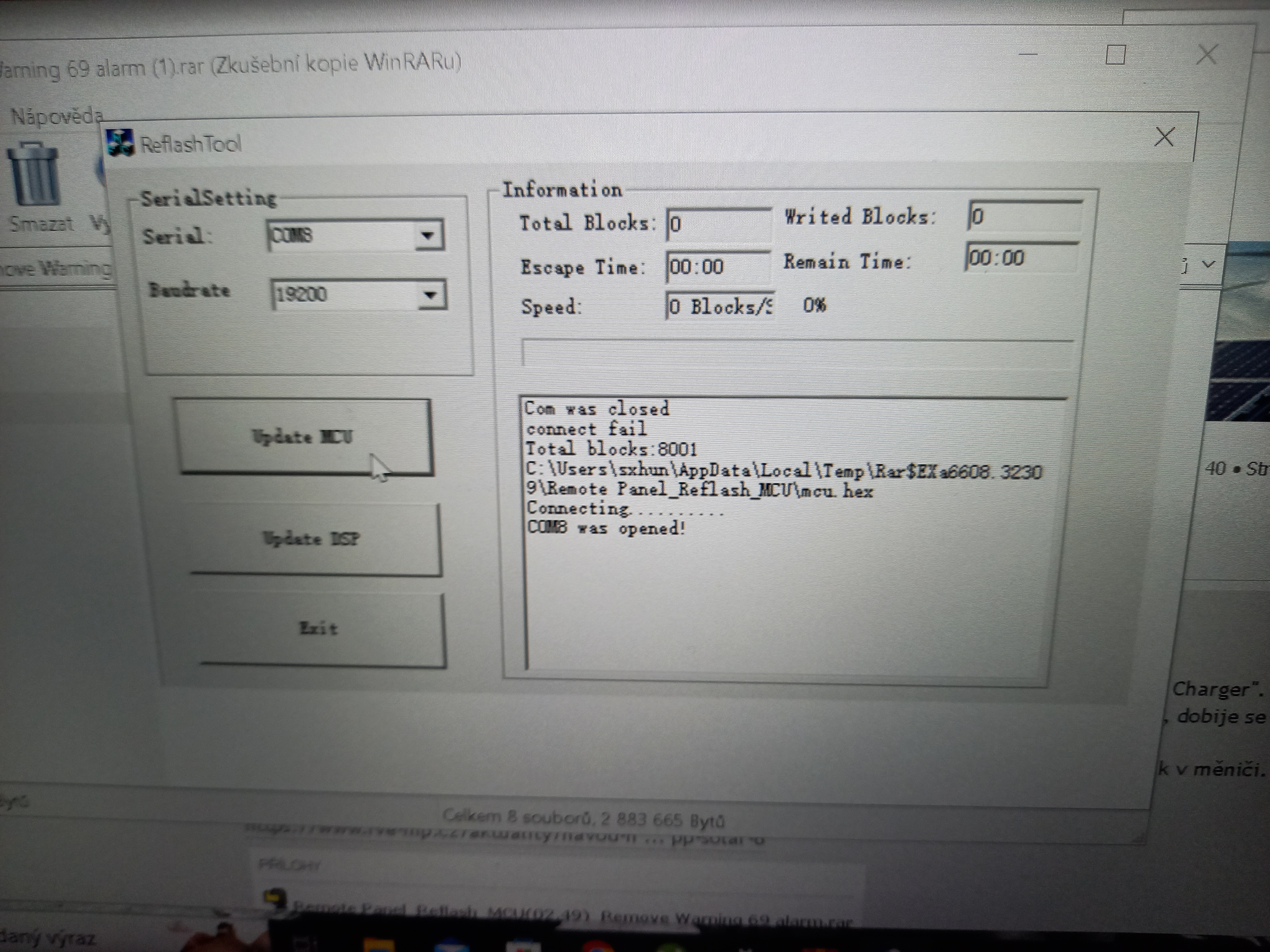 Jj spustím pro display. První část normálně funguje a u té druhé mi to nahlásí chybu u toho přehrání. Dle mého to nefleslo ani procento jelikož to vyhodí tu chybu. Už jsem to zkoušel při více vypnutí, ale jsem k tomu skepticky než totiž to něco začne dělat tak je to doba.