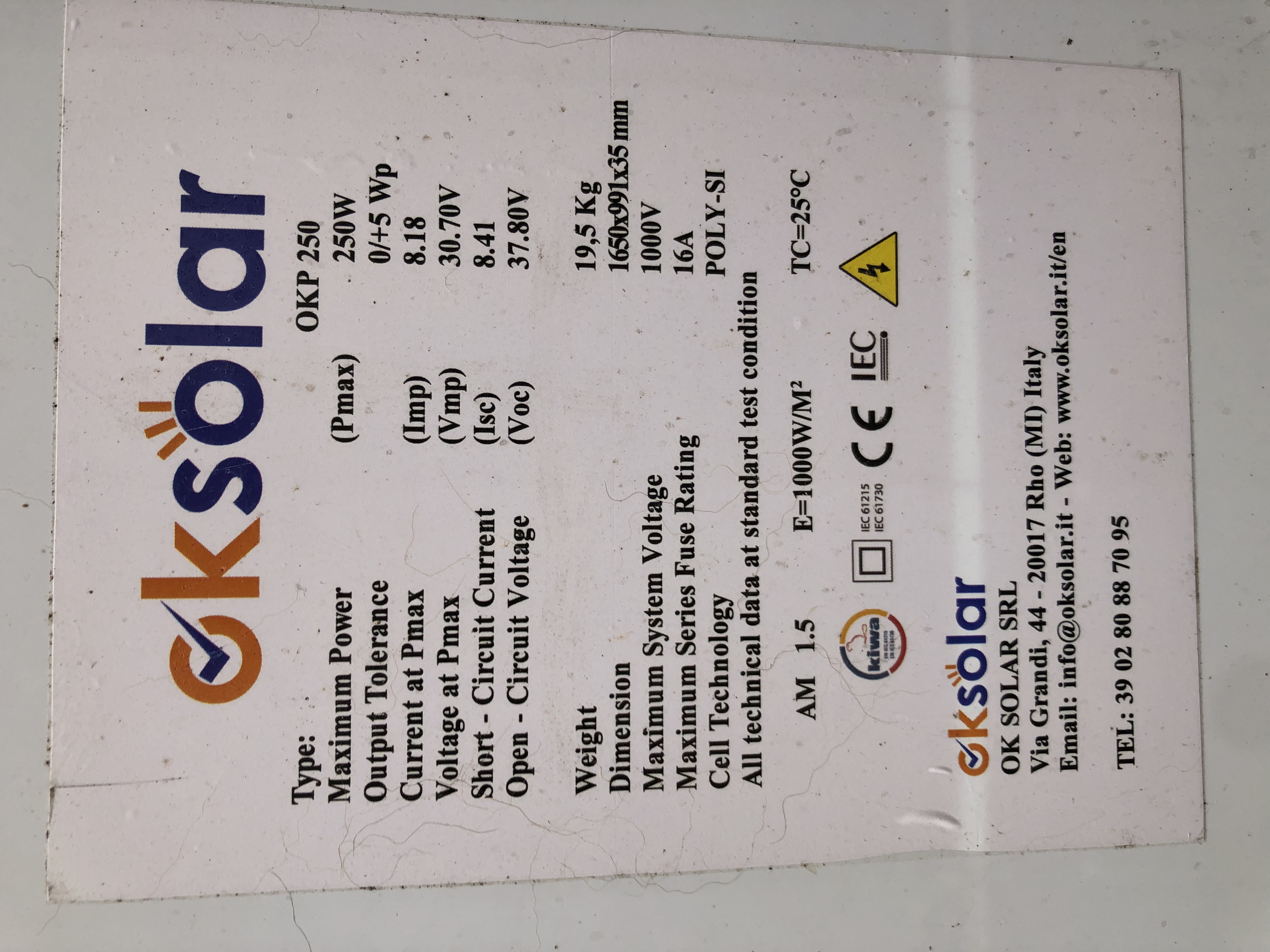 Re: OKSolar poly 250W
