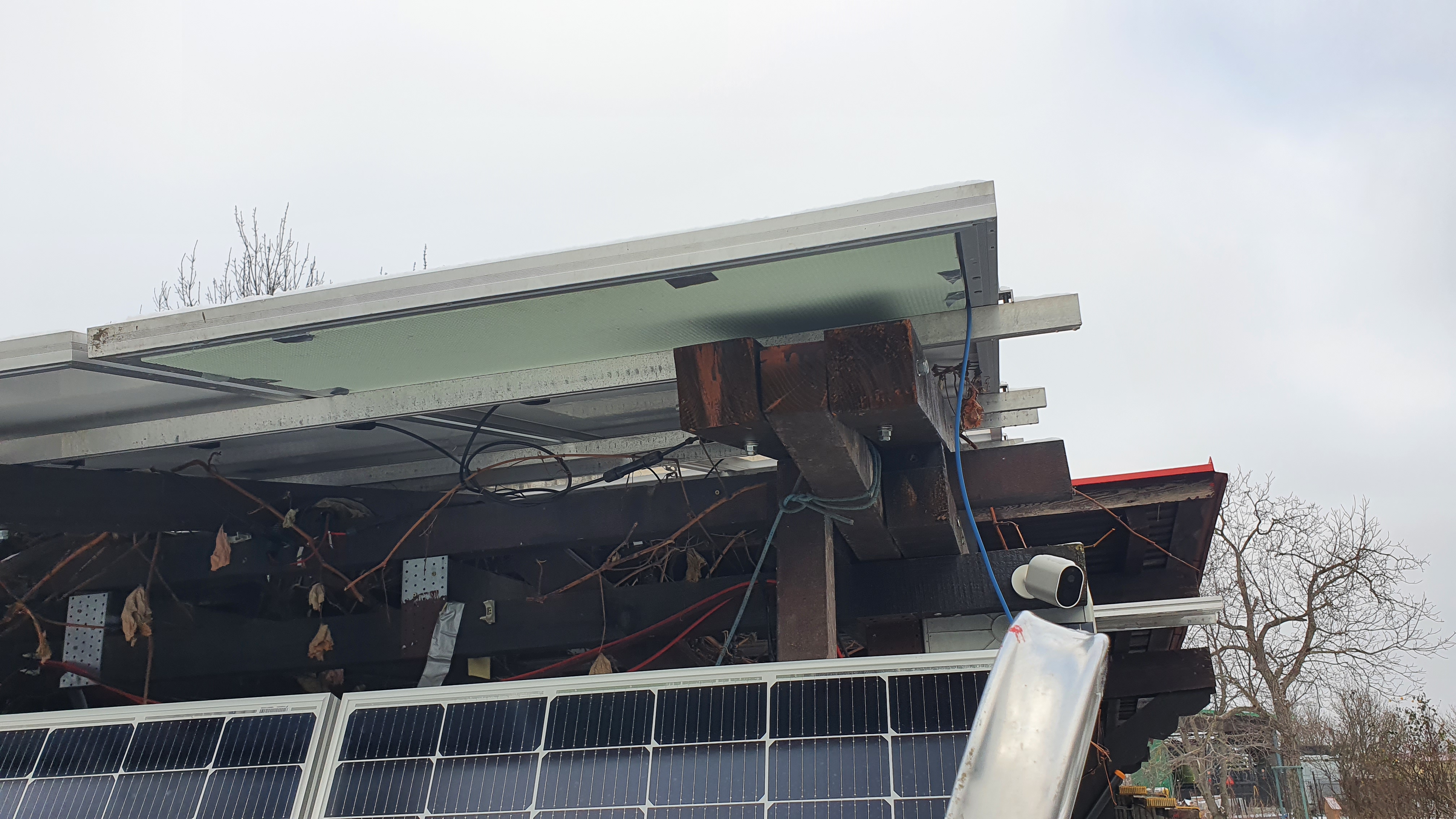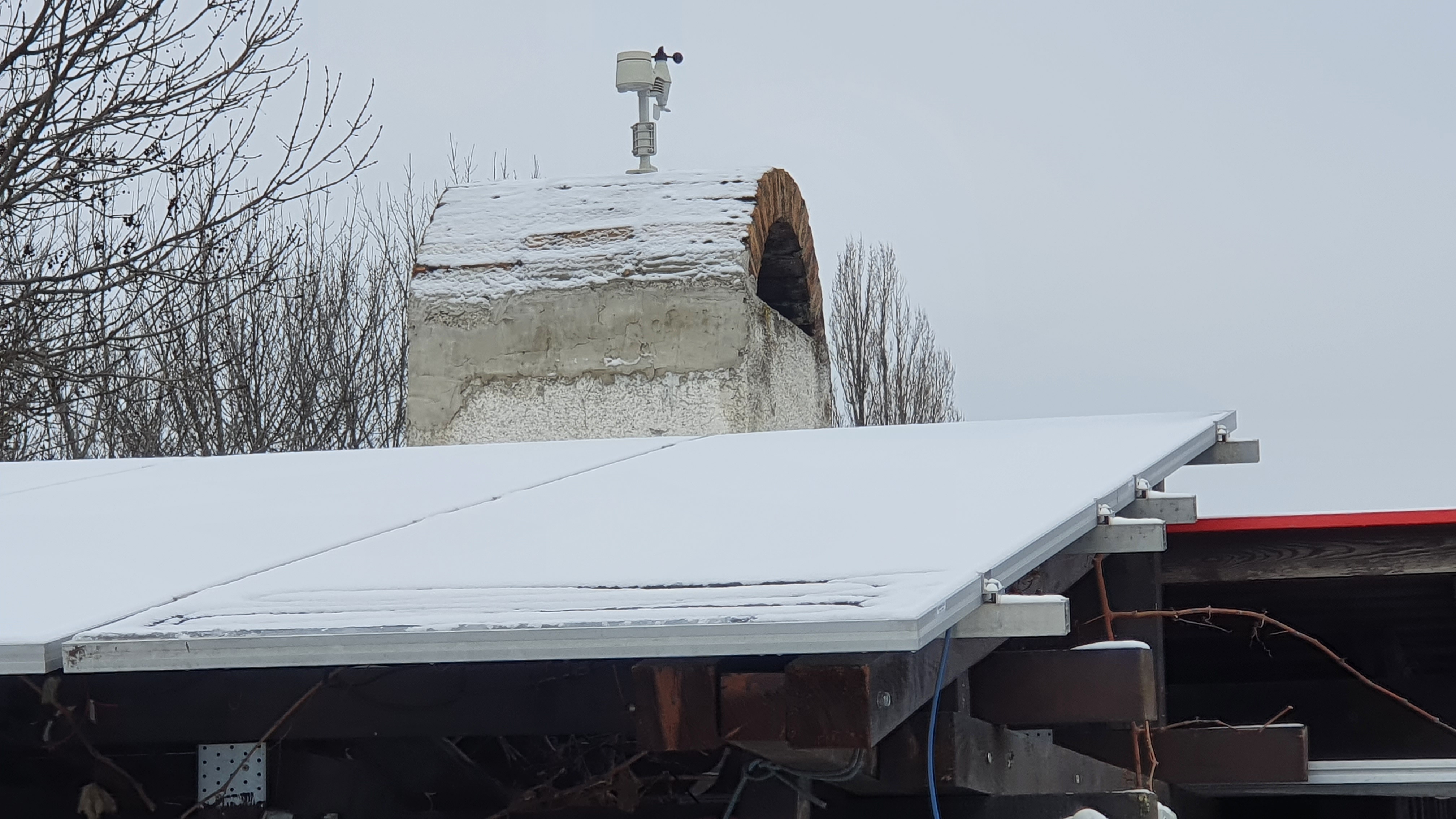 . Povodne bol moj pristresok osadeny 6x poly panelom300W (Schutten) v sklone 45%. Ked nasnezilo, obcas trebalo stiahnut sneh, ale inak stacila teplota okolo 0C (na zahori 250mnm bezne) a bolo cisto. V roku 2021 som prerobil na 12x330Wp mono, ale sklon sa znizil na 12stupnov. Tu uz treba kazde snezenie ometlovat.