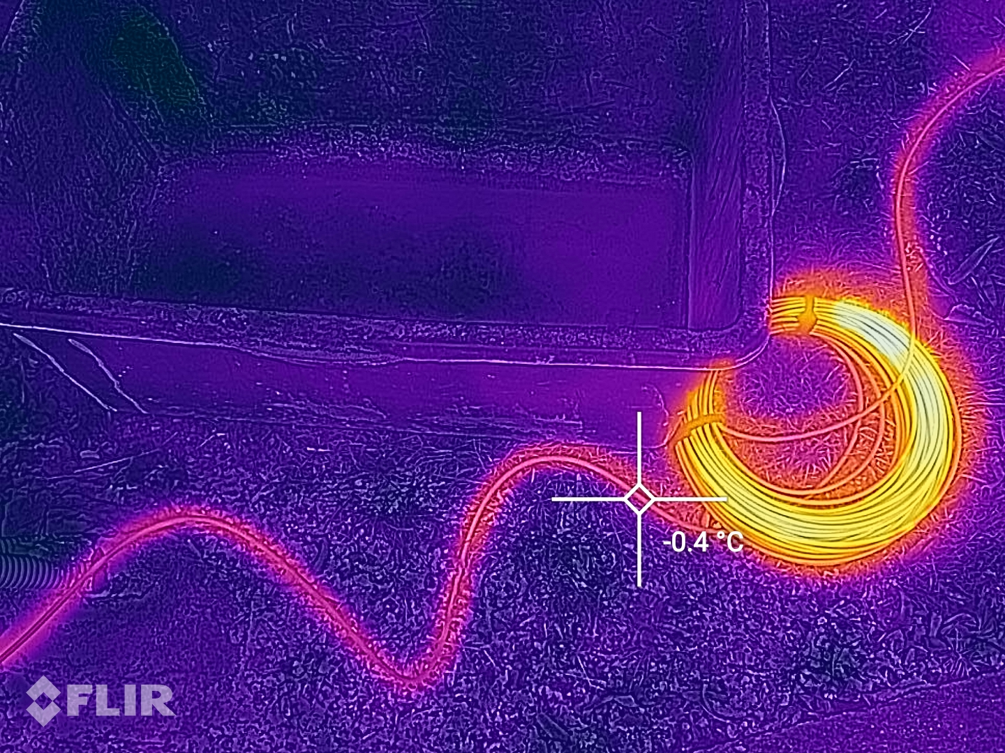Dnes som urobil pokus #2 so silnejsim kablom - 30W/meter, značka rovnaká = Raytherm. Na rozdiel od pôvodného má 6mm, UV stabilizáciu a 40m stálo cca 120e Príkon cca 1200W. Vonkajšia teplota jemne pod -2C, sneh zmrznutý (naschvál som to nechal od posledného sneženia 3 dni zatvdnúť.