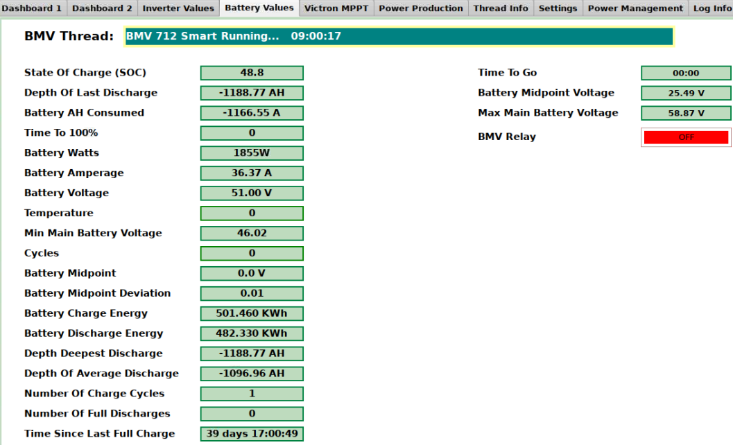 EDIT: omlouvám se napsal sem tam blbost 1180 Ah vybito ale z celého packu, je nutné dělit dvěma. tzn těch 600 Ah reálně. Bohužel dnes už zase svítí a tipuju že SOC pujde nahoru..... Tady jsem pochybil já... PACK mám 1 ks 750 a 1 ks 775 Ah