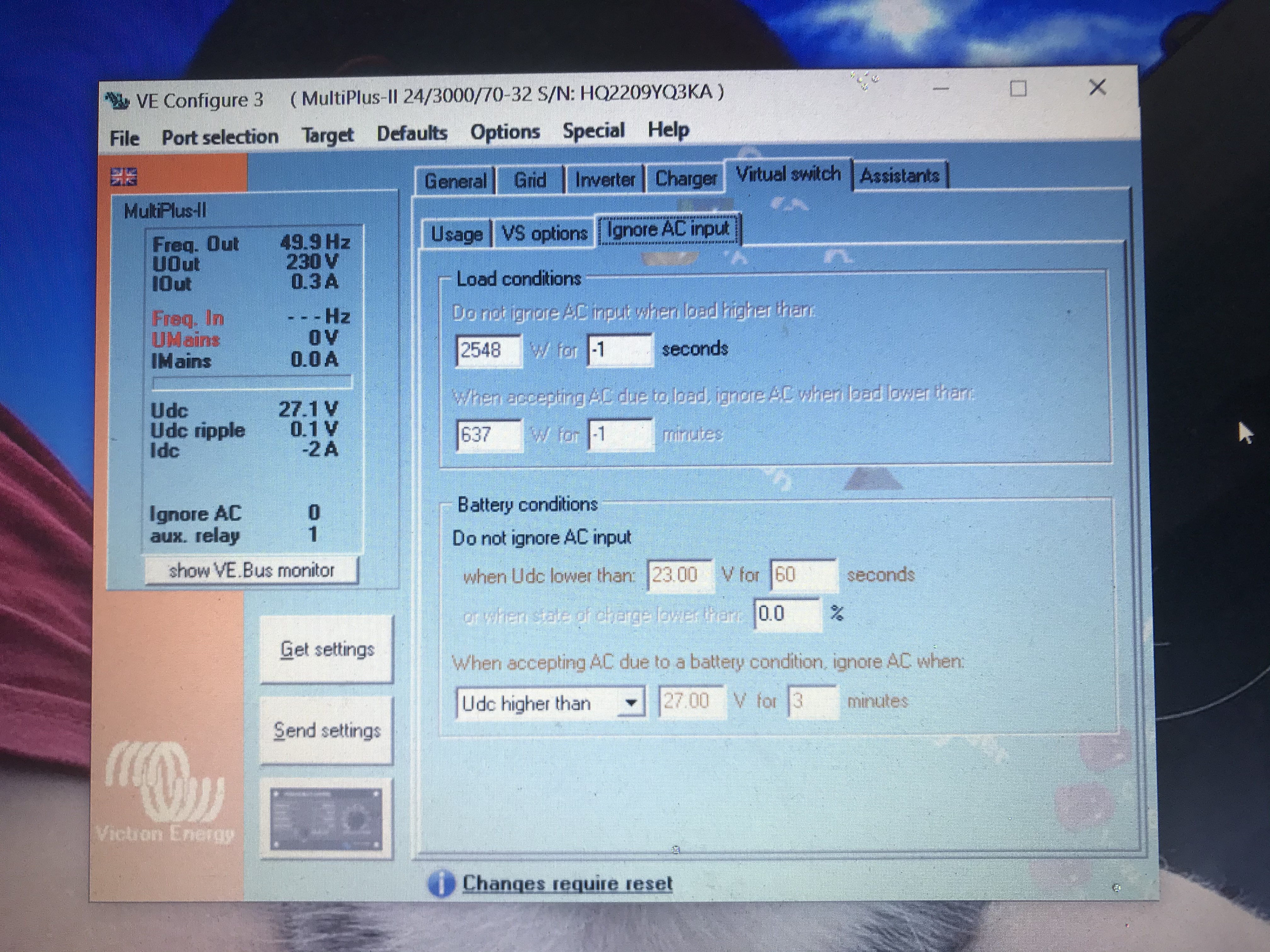 Dnes som sa trochu hrabal v nastaveniach virtual switch, vybral som dedicated ignore AC input. Chcem používať DS podľa napätia batérie ako som nastavil na foto. Batériu mám LiFePO 25,6V. Mohlo by to takto byť? Ď