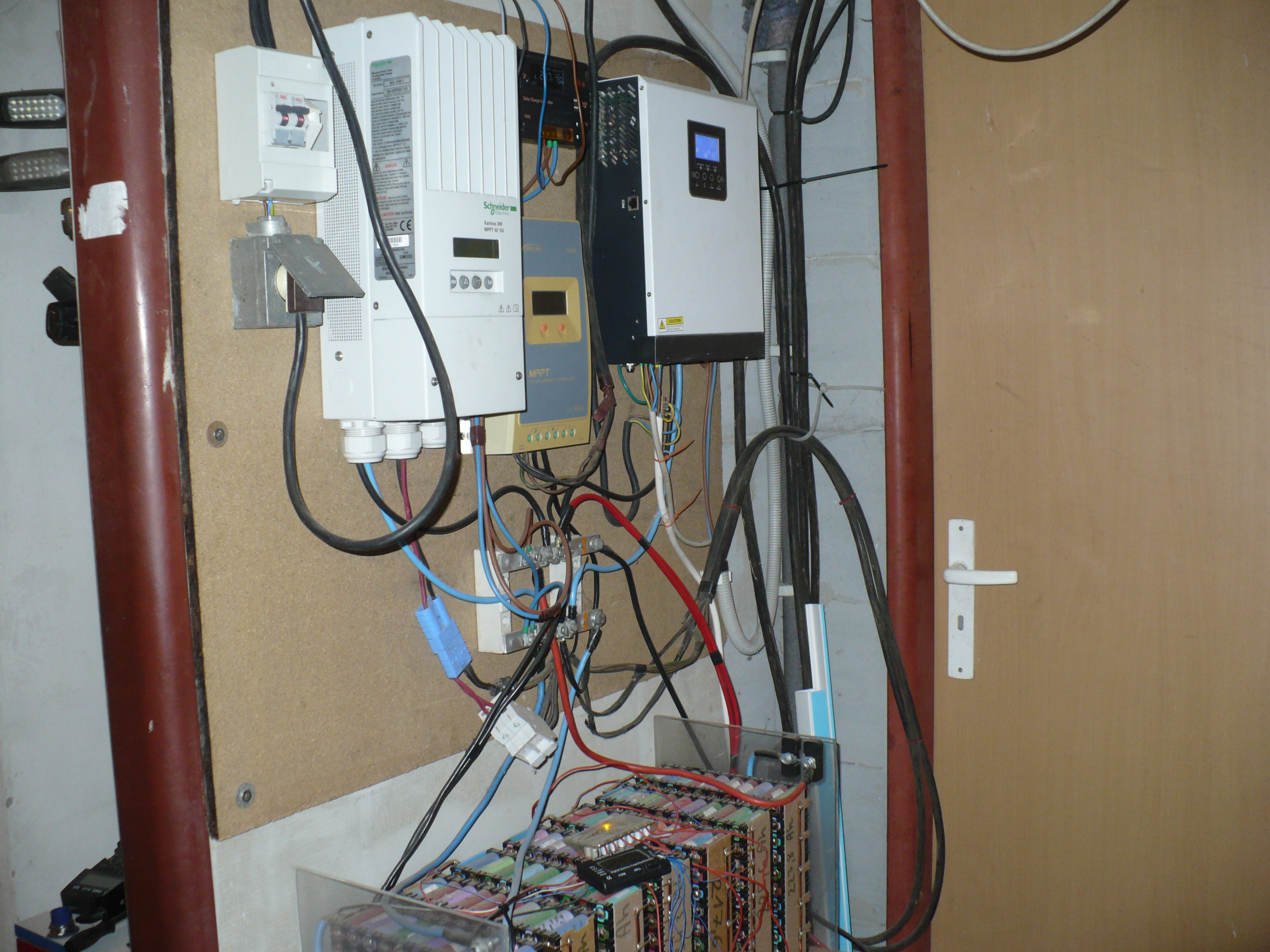 Nabíječka 1kW z generátoru. Elektro koltel 48V DC, 9kW 9 stupňů regulace. 750lt aku nádrž, 200l bojler. 3x split klima na topení a chlazení a samozřejmě automat na uhlí. Protože jsem Eko a Wegan v jedné osobě