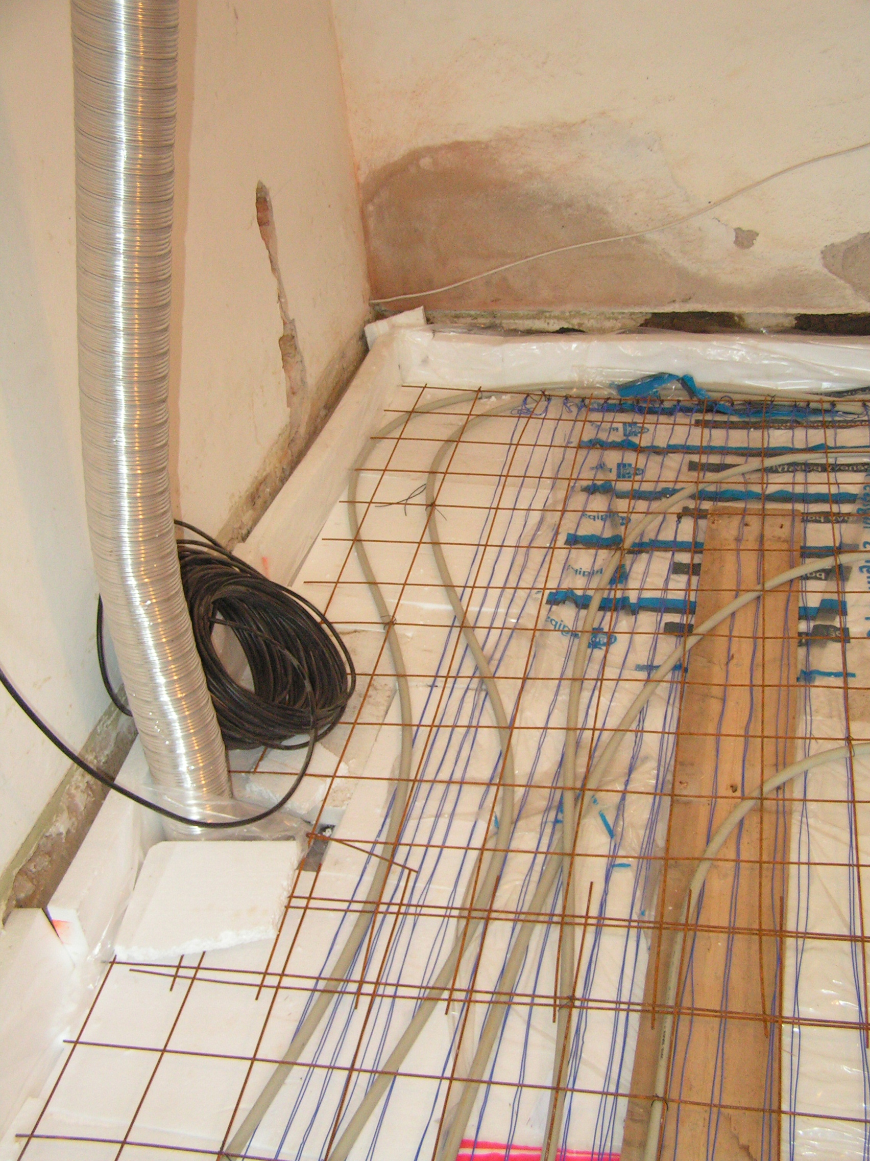 V betonu bylo dost místa, tak tam jsou ještě trubky (obyčejné PPR, žádná kyslíková bariára) pro případné vodní topení, ale to jsem po dokončení tak týden zkoušel že tím voda teče a topí a tím to skončilo a čeká to na svůj čas.