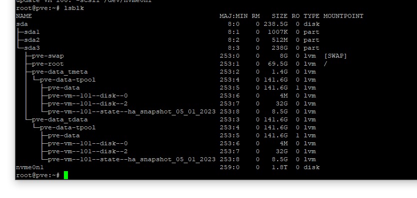 ├─pve-swap 253:0 0 8G 0 lvm [SWAP]