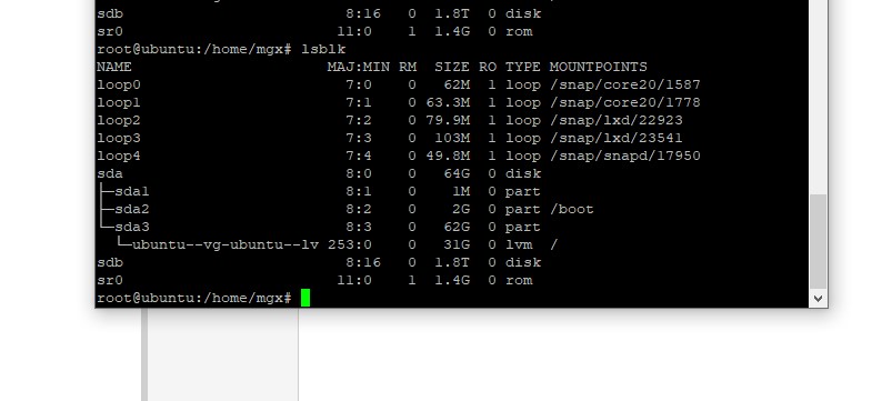 NAME MAJ:MIN RM SIZE RO TYPE MOUNTPOINT