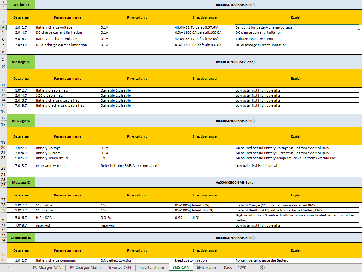 Ahojte, MUST meniče podporujú aj ovládanie BMS cez SoC, podľa dokumentácie cez CANBUS. Protokol som tu už dostal, ale nikde som sa nedozvedel, aké batérie oficiálne MUST podporuje.