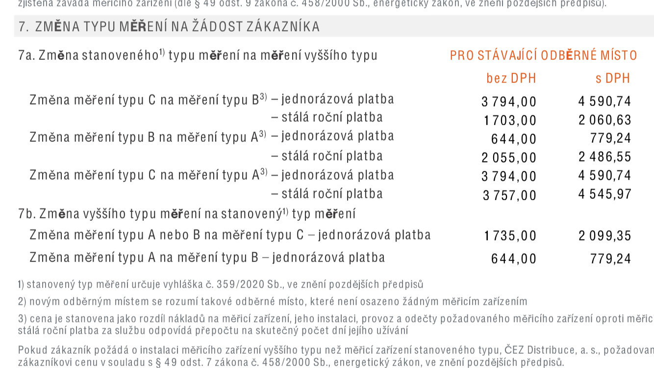 Je zmena typu mereni z typu C na typ B. Cenik dle CEZ distribuce