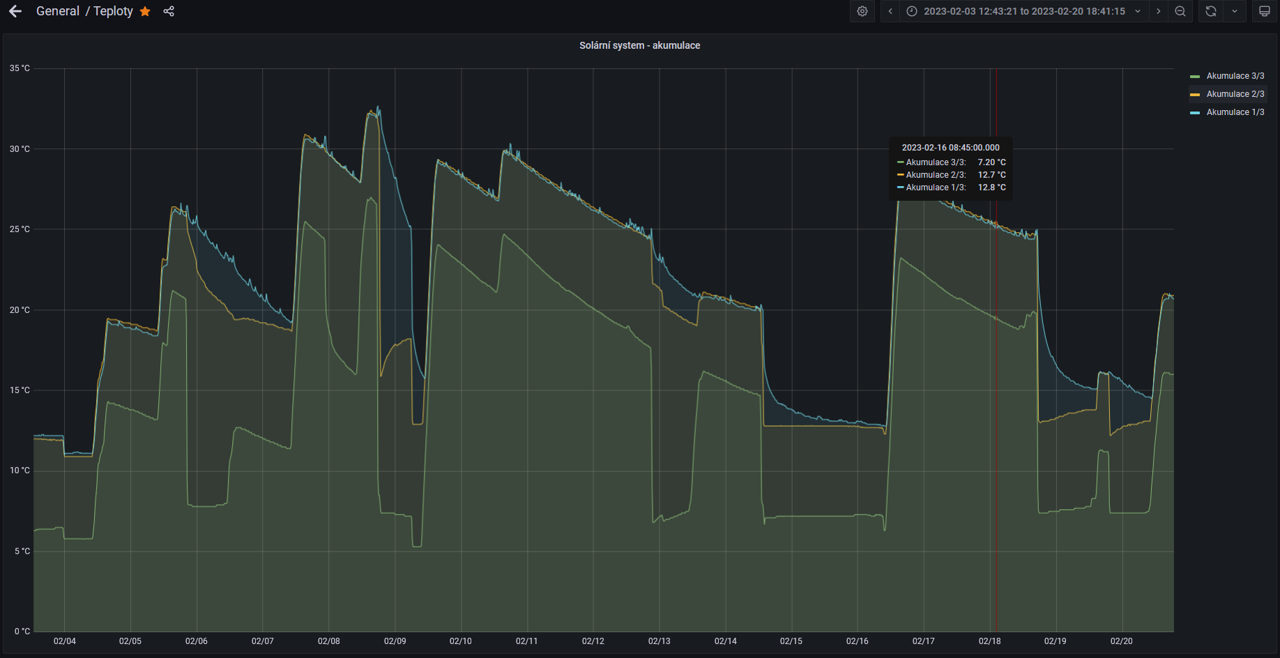 Samotíží se krásně nahřejí oba dva do plna. Na zimu zavřu na propojce kohout, aby se od soláru temperoval jenom jeden, protože energie je málo. Za tím mám plynový kotel s přímým ohřevem.