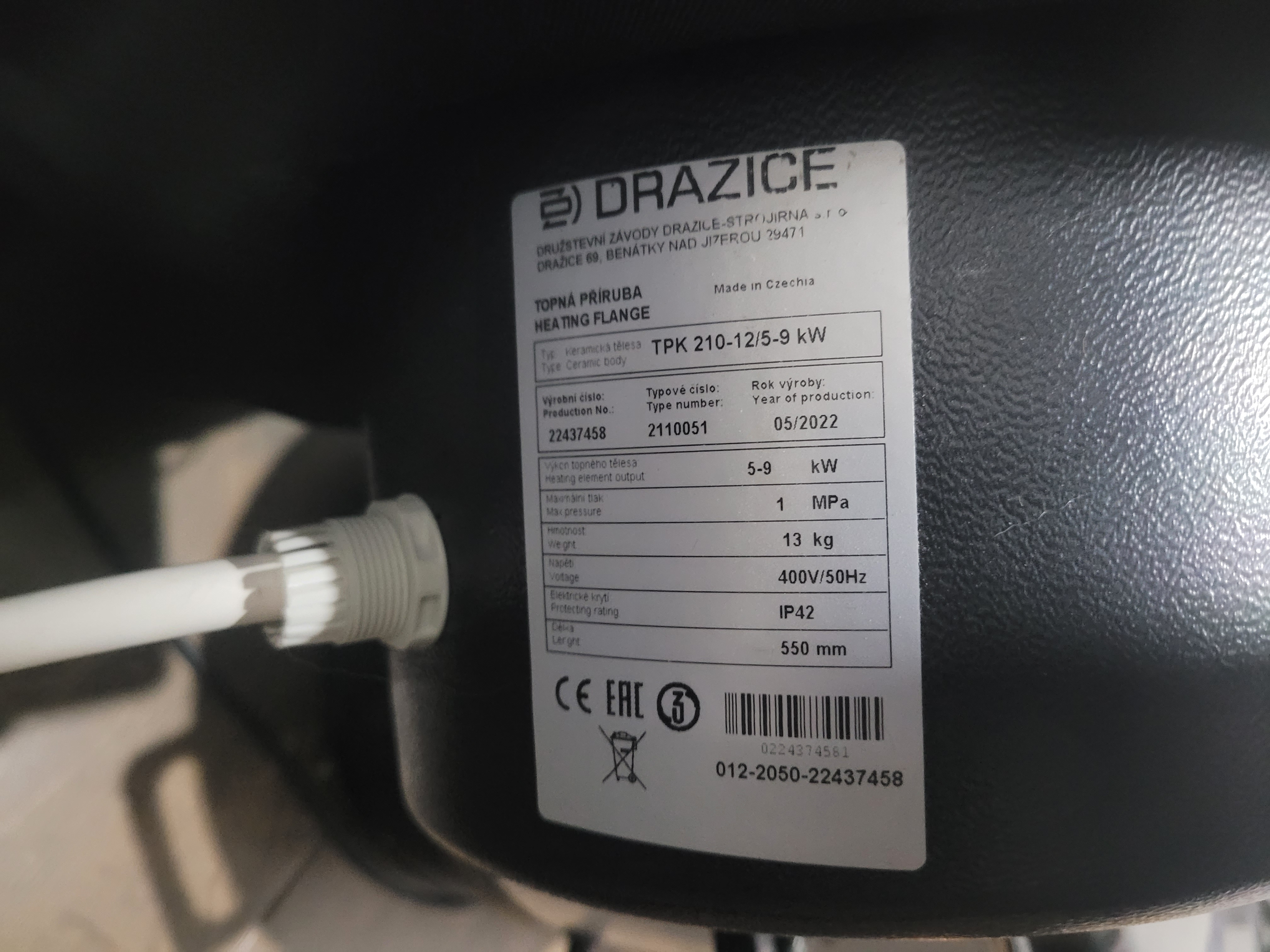 Aktuální stav akumulačka Dražice 1000l/ 140 vnoreny bojler. Osazena TPK 400V 5-9kw a TJ 2.5kw