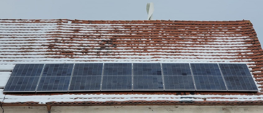 Panely jsem před instalací ošetřil nano impregnací od ANGERu, a musím uznat že sníh se dlouho neudrží. Jako hybridní regulátor který jsem prozatím pořídil je jednofázový