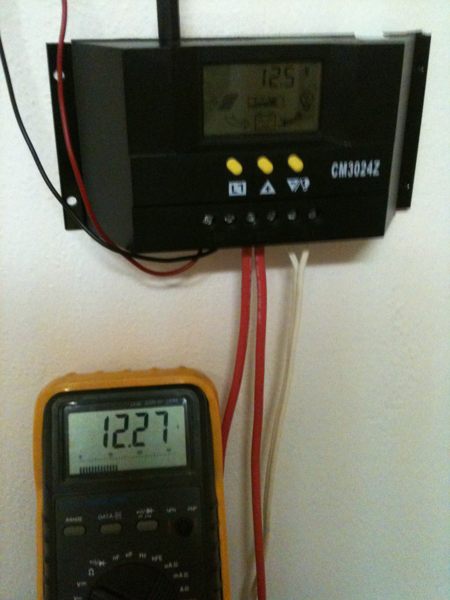 Mám tento regulátor, dělá mi to také. Ale jen teoreticky!!! Pokud měřím napětí přímo na baterkách, dobéřu se podobného výsledku, jako je na obr. výše. Pokud měřím přímo na svorkách regulátoru, naměřím totéž, co je na disleji, plus minus 0,1 V. Každopádně s tímto regulátorem jsem velmi spokojen, vzhledem k velkému rozsahu nastavitelných hodnot. Za ty prachy (1300,-) paráda. Jediné mě trochu vadí- při mrazu přidává docela dost napětí nahoru. CX tolik nepřidával. Ale lze to jednoduše vyřešit odpojením čidla teploty, pak je koncové napětí přesně podle nastavení.
