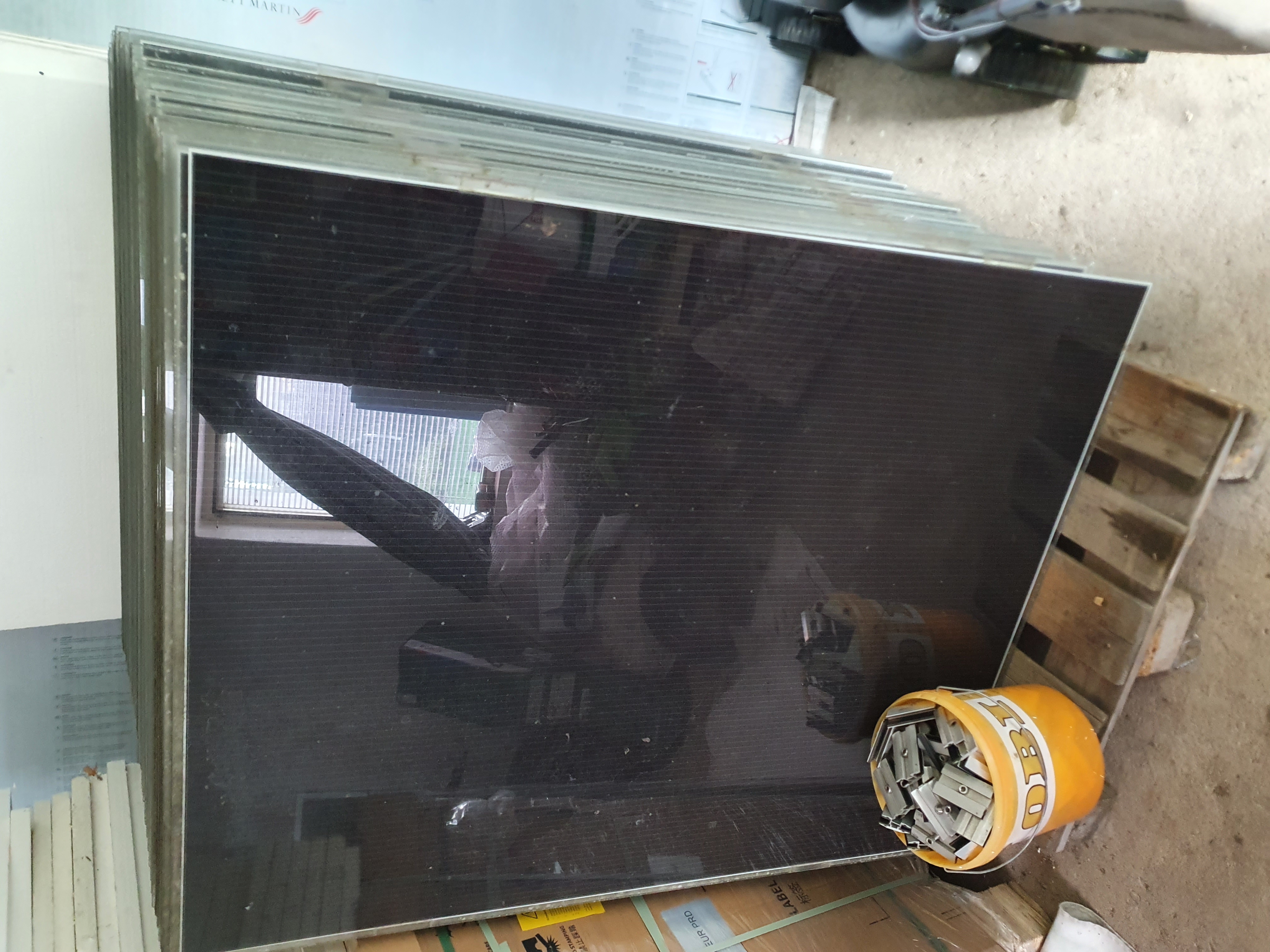 38x Amorfni panel Auria Solar 120W. Rozmer: 130x110cm, Výroba 2010, v provozu cca 5 let. Bez konektorů + příchytky