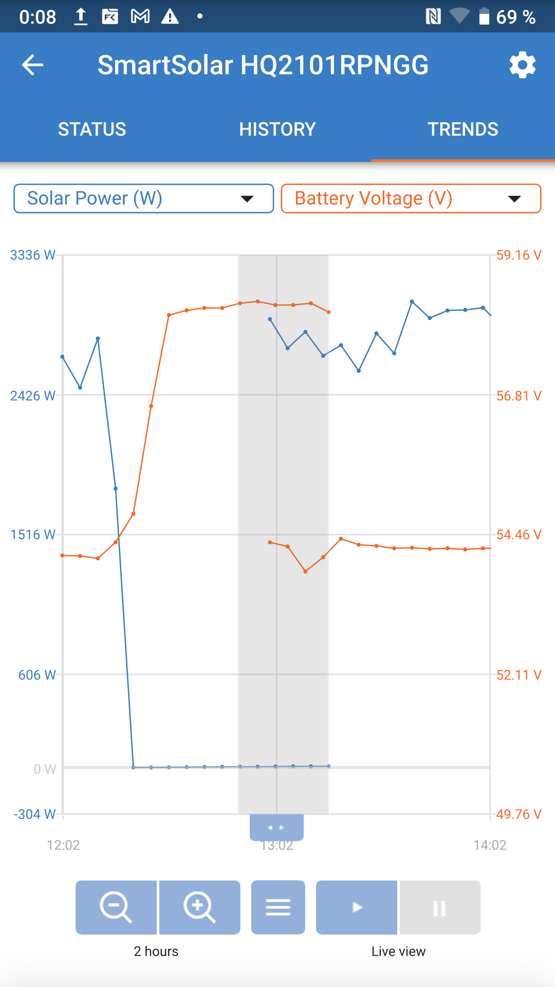 Používám jen victrony mppt, ale nikdy jsem to neprovozoval s tím battery sense, zatím jsem se s přepětím při nabíjení nesetkal. Výjimečně jen pár mV u PB akumulátoru pokud mají málo Ah a velký výkon panelů. Kontaktoval bych prodejce victronu, zda není nějaká chyba v softu, když se zapojí ten battery sense.kybos píše:Závada nabíječe Victron SmartSolar 150/100 TR VE.CAN s čidlem SmartBatterySense HQ2044GS8HU.
